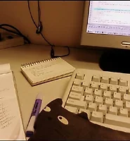 키보드 받침대. 저거 2004년 한국에서 떠나오기 직전에 다녔던 회사.. 퇴사할때 여자아이들이 돈 모아서 사준 선물이다. 마우스 받침 손목 보호대도 있는데 그건 조금 불편해서 집에 놔두었다. 선물받은지 3년이 넘어가다보니 저 녀석도 슬슬 보풀도 일고 하는데 고맙게 잘 쓰고 있다. 좋은 선물은 볼때마다 선물한 사람들을 떠올리게 한다.