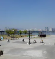 여의도 한강공원은 대한민국 정치, 금융, 방송의 중심지를 배후에 두고 있다.