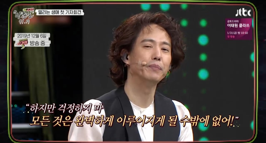 모든 게 완벽하게 이뤄질 수밖에 없다는건 이렇게 화려하게 된다는 뜻은 아니었다고 한다. 슈가맨 방송 당시만 해도 미래 계획은 따로 없고, 매일매일 가장으로서 아버지로서 최선을 다해 살고 있다고 했던 것 같다. 그러니까 완벽하게 이뤄진다는 말은 크게 성공한다는 말은 아니었을 것이다.