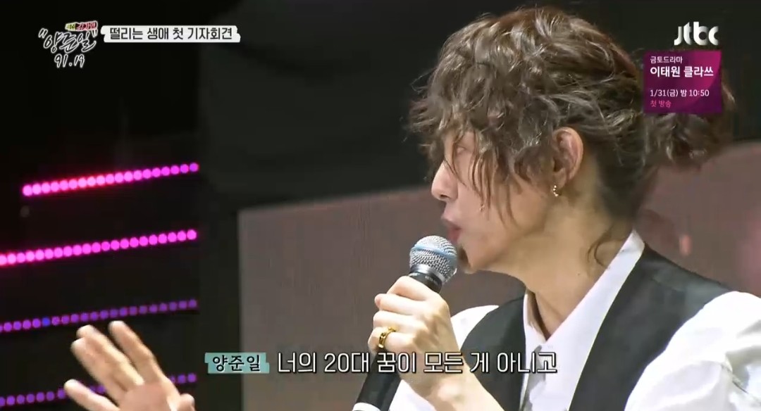 전에 슈가맨에서 양준일이 이야기한 "20대의 나에게"가 인상적이었는데, 기자회견에서도 이 말에 대한 질문이 나왔다.