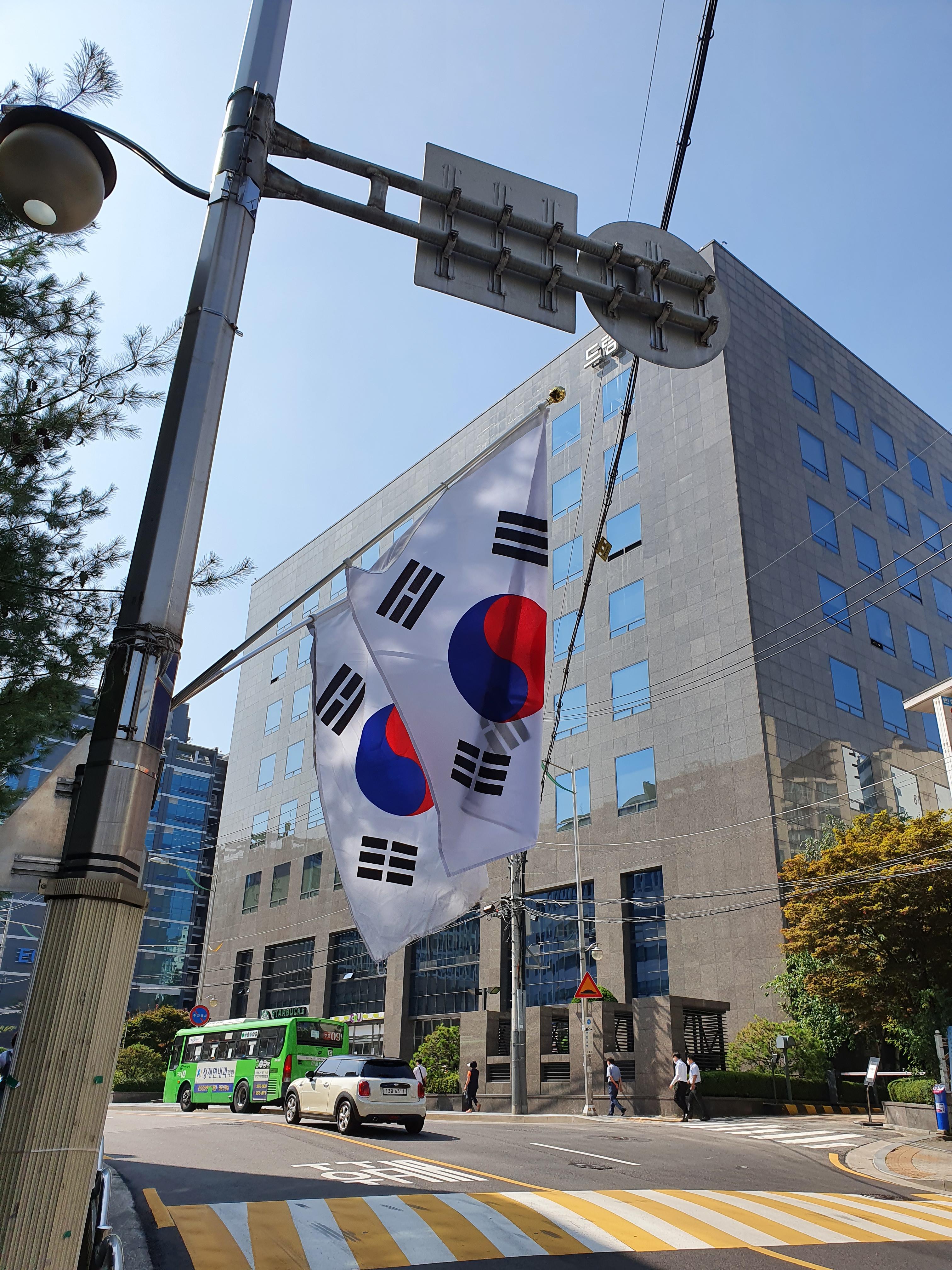 이제는 평일이 된 평범한 날들 중에 하루가 된 제헌절을 기념해서 그래도 태극기를 다는가보다.