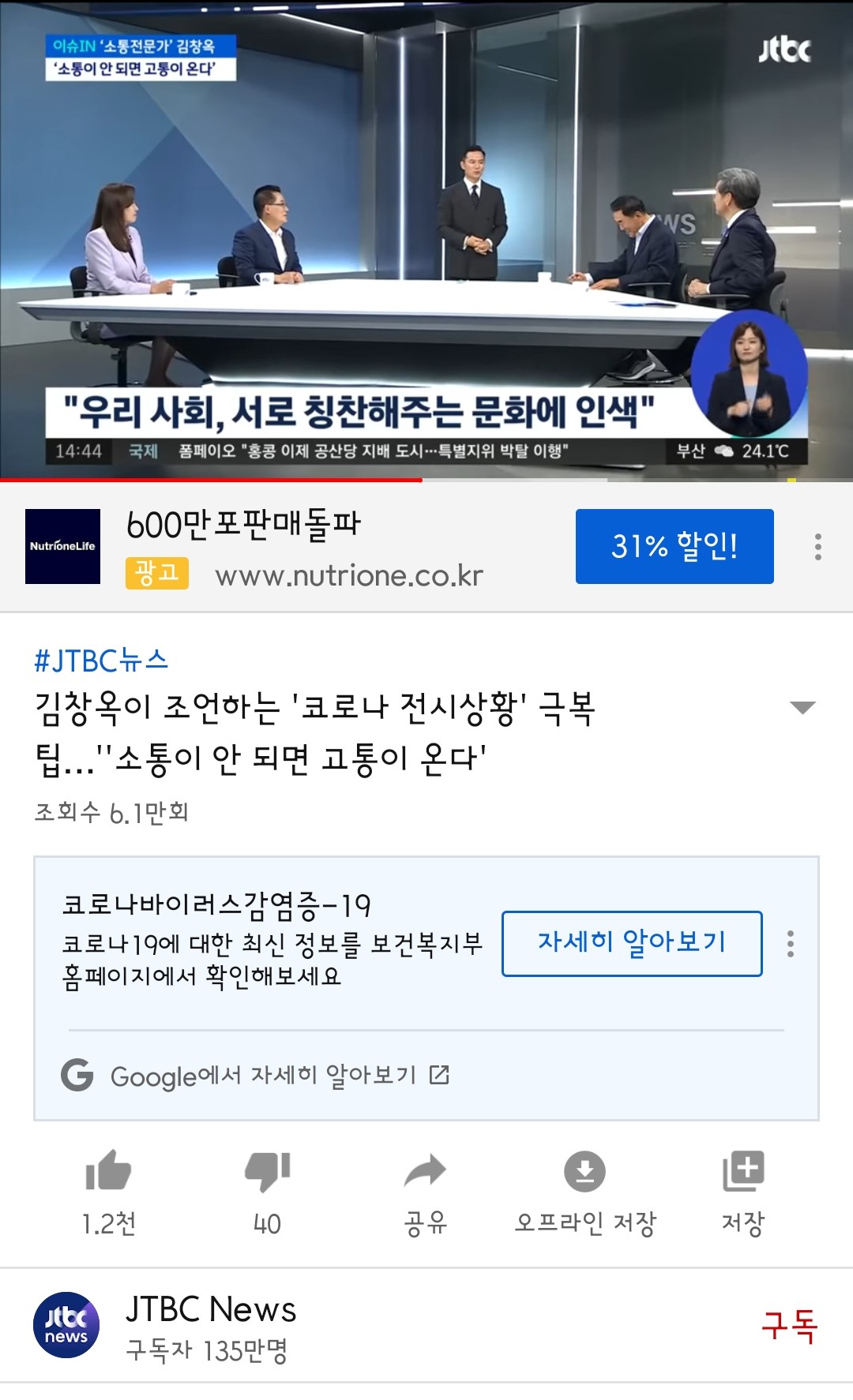 김창옥 선생님은 유쾌한 내용을 꽤 재밌게 풀어서 말씀하신다. 유튜브 동영상을 몇개 보면서 웃으면서 고개를 끄덕였던 생각이 난다. 유튜브 알고리즘 덕분에 jtbc뉴스에서 10분짜리 미니 강연하는걸 보게 됐다. 뉴스?에 약간 안 어울리는데..