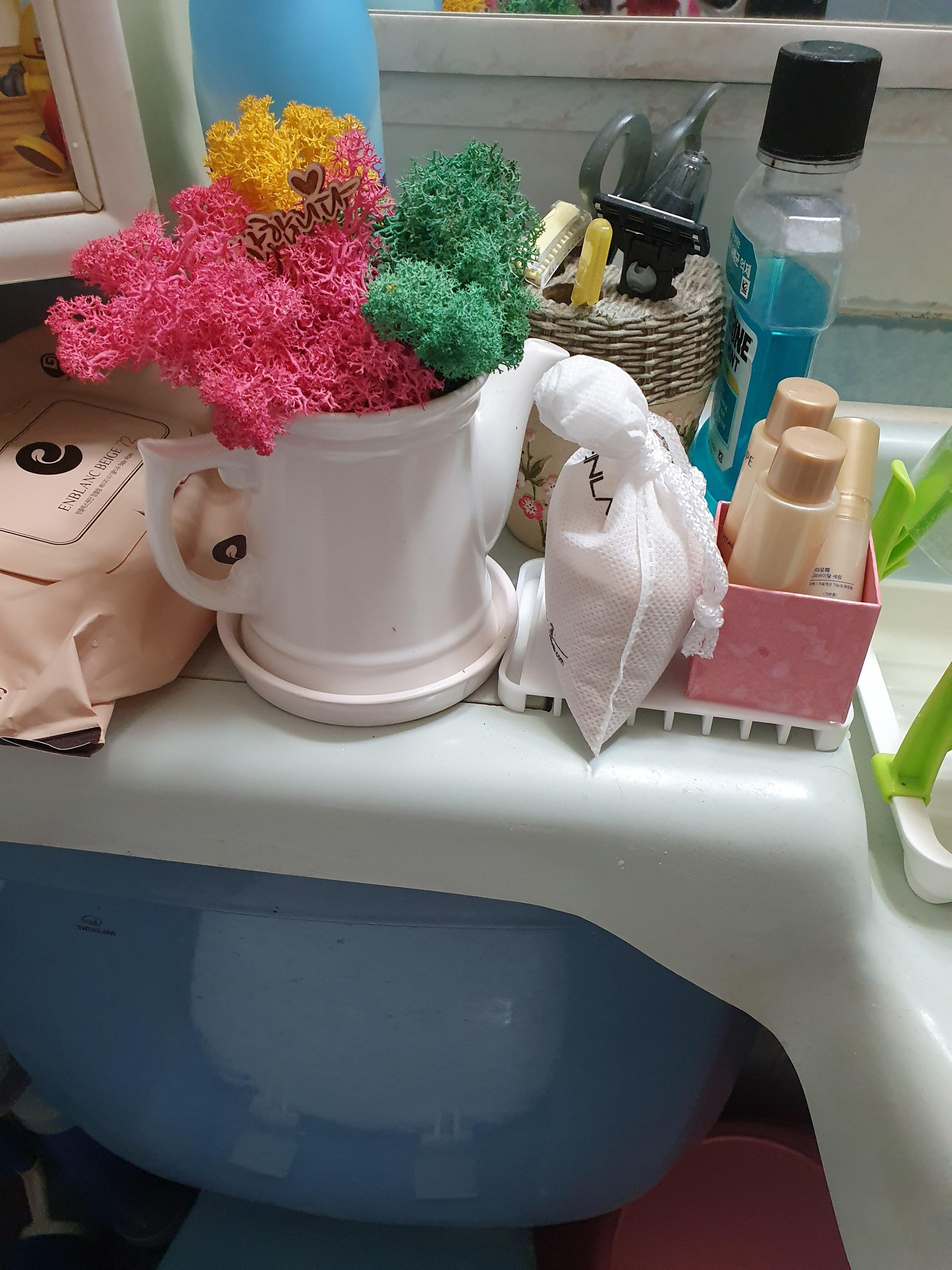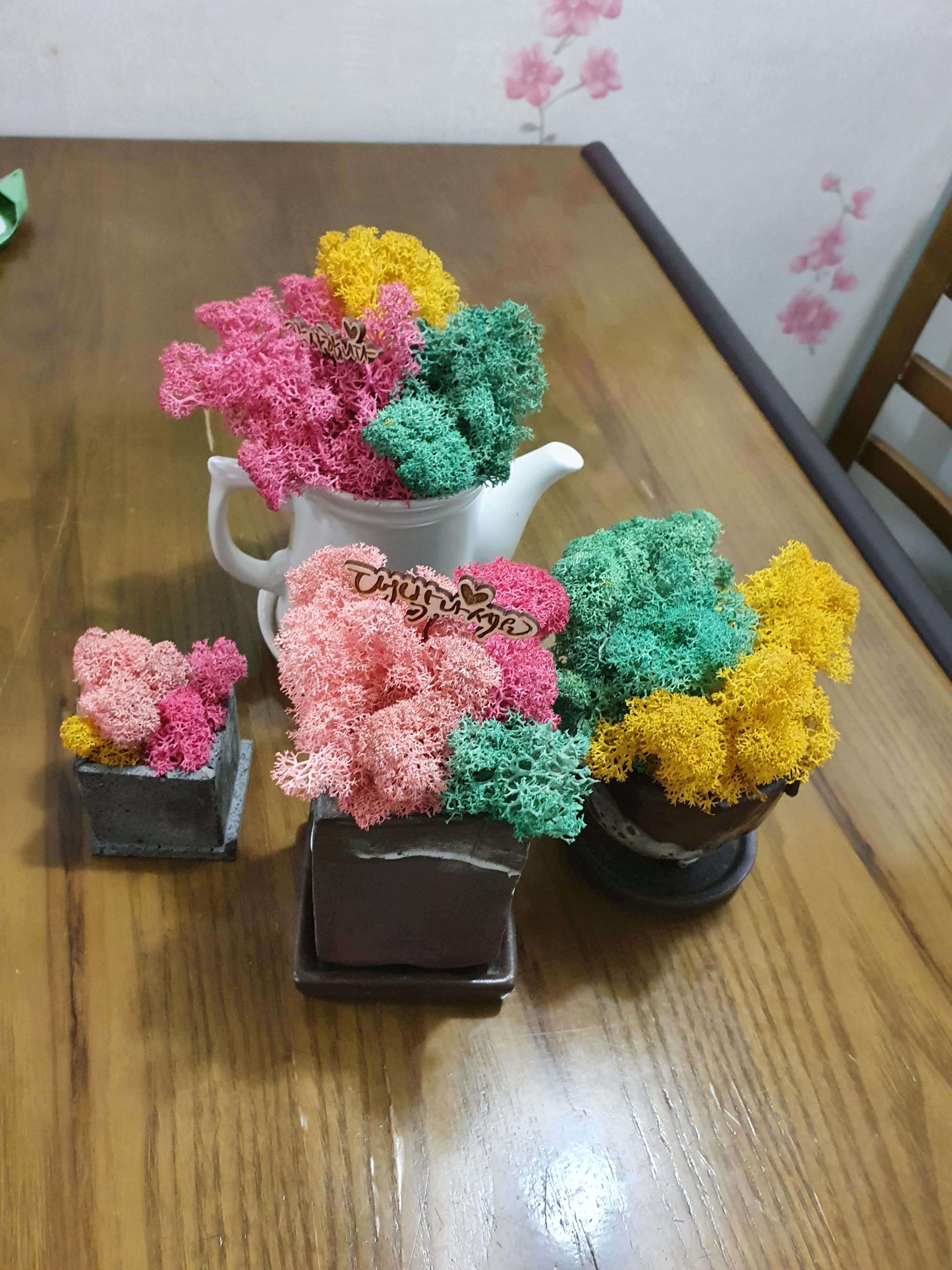 물을 주지 않아도 되는, 이끼라고 했다. 건조하면 딱딱해지는데, 물기 많은 곳에 두면 부드러워진다고 했다. 아니면 공기 중에 분무기로 칙칙 뿌려주라고 했다. 물을 직접 주면 안 된다고 한다.