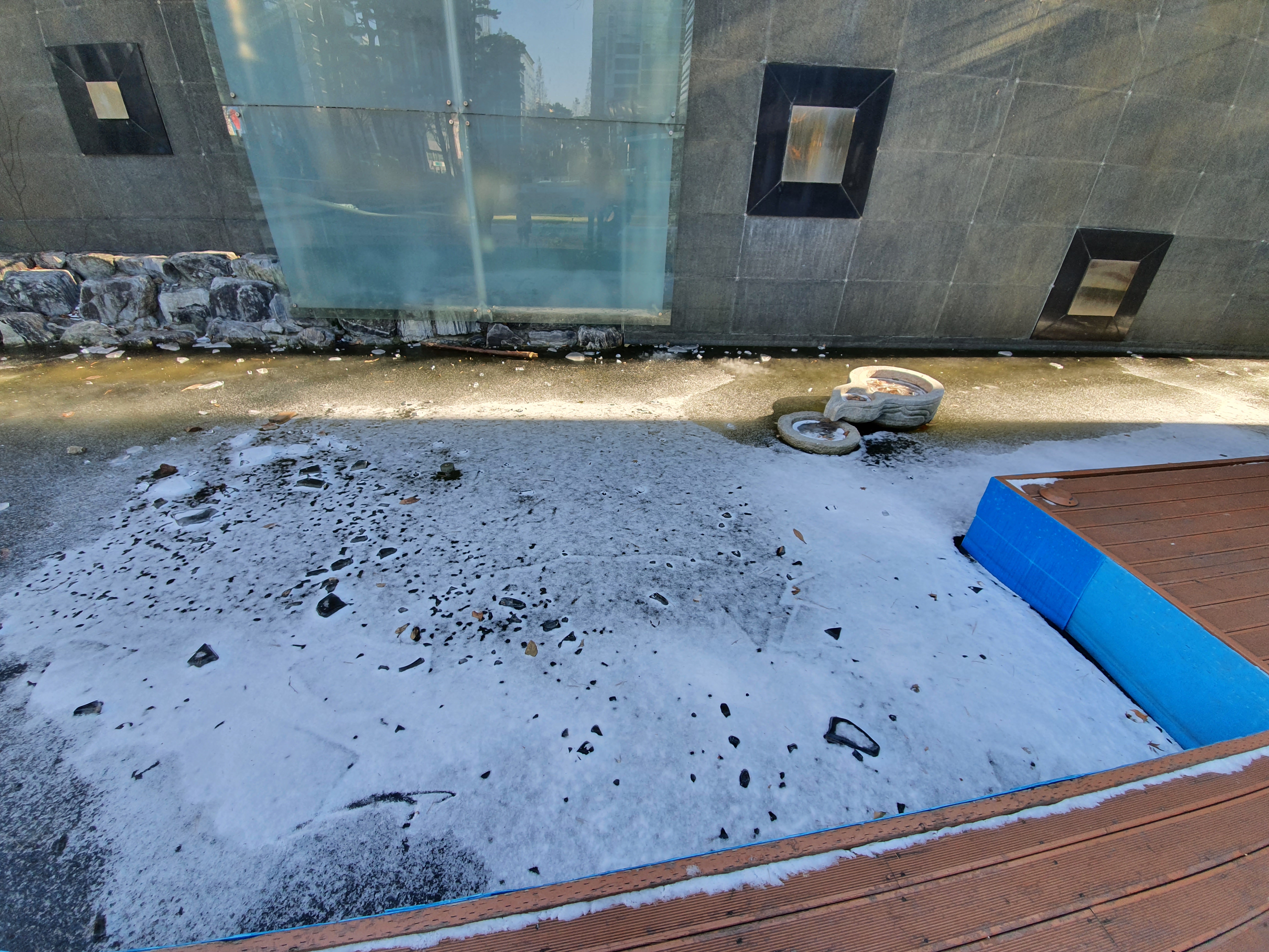 (지난주) 한 열흘 영하10도 가까이 되니, 분수대 연못(?)이 얼어붙었다. 본문