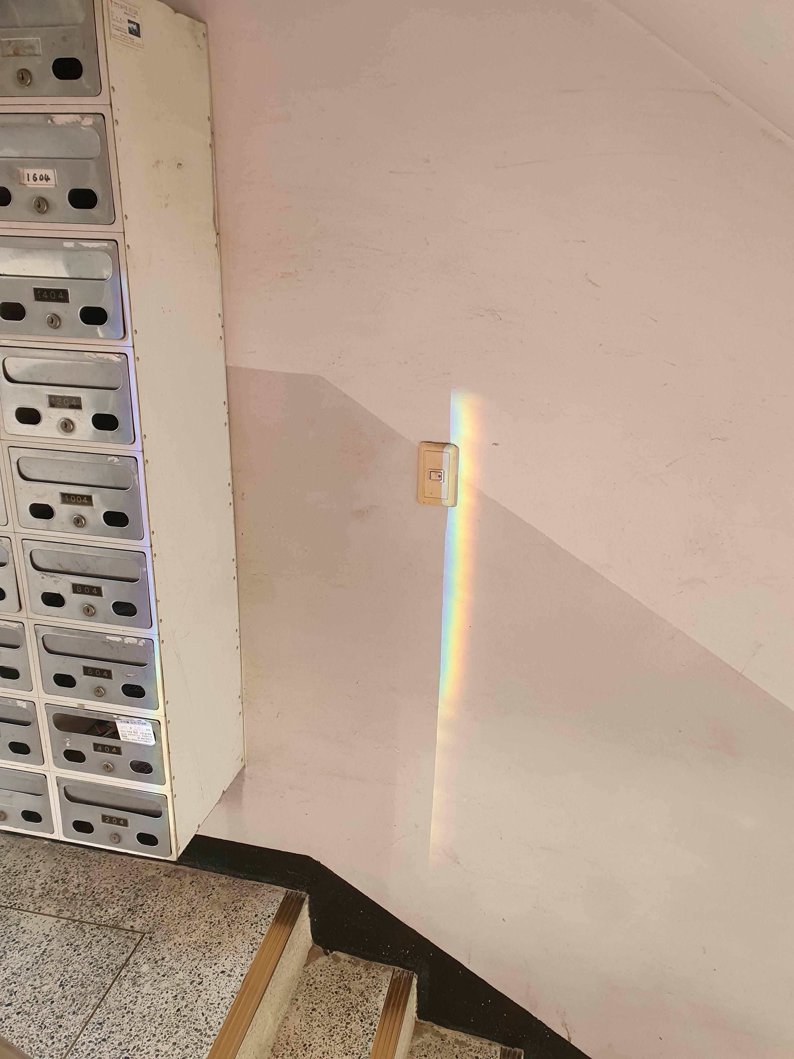 출입문에 햇빛이 비춰 생긴 선명했던 무지개를 본 날을 기억하는 이유는..