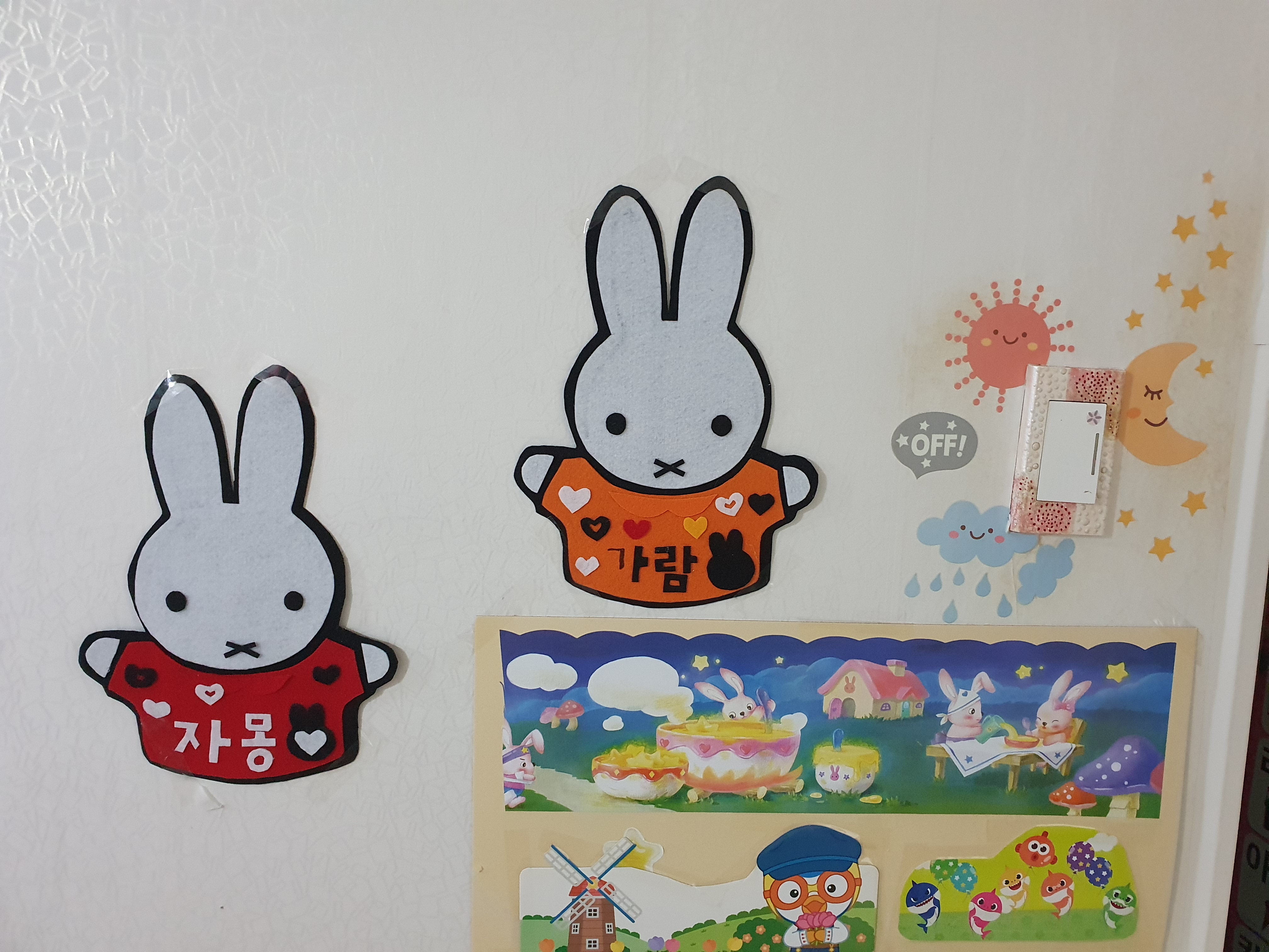 산후조리원에서 만들었던 토끼 인형을 벽에 붙이다. 본문