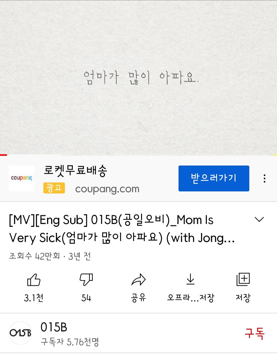 : 아침부터 울려버린 노래 "엄마가 많이 아파요(윤종신)"