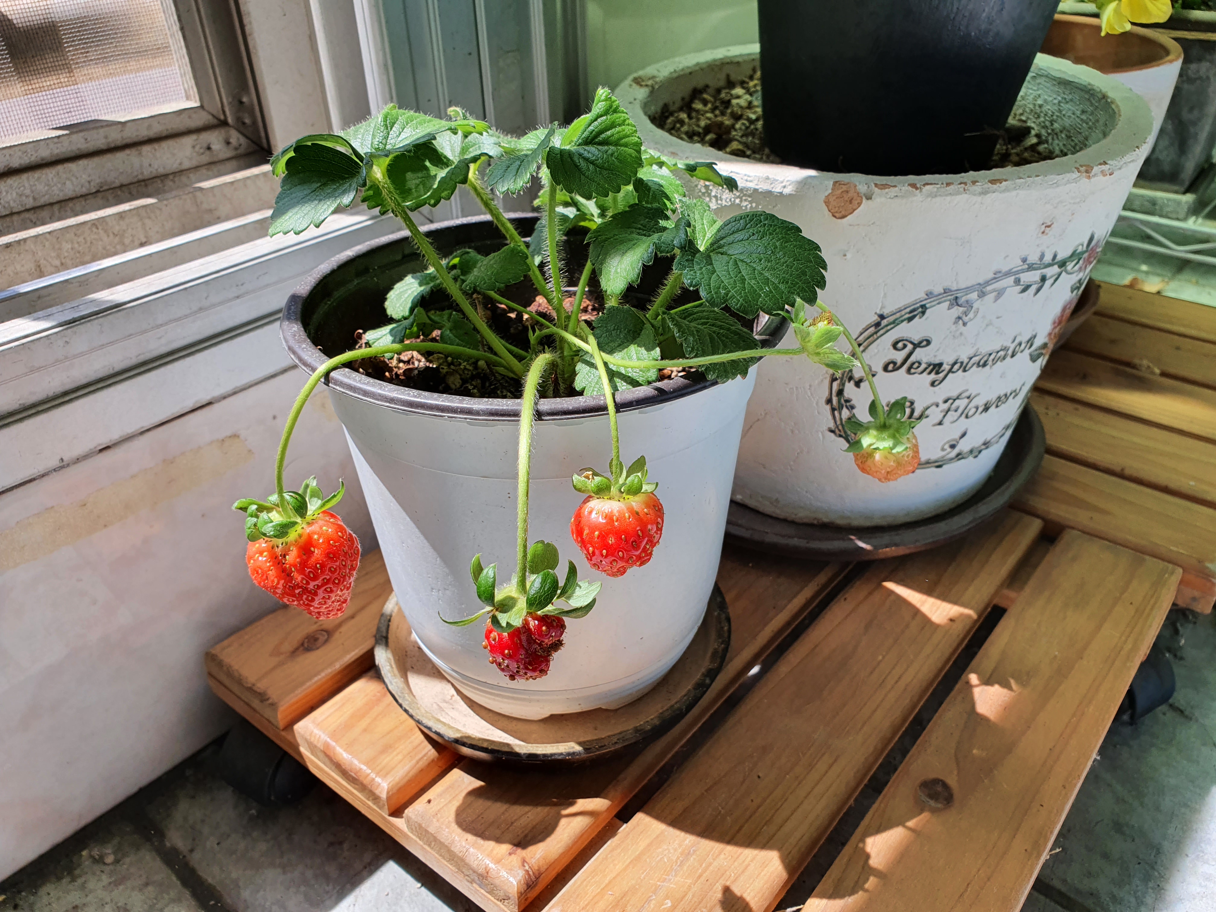 베란다에서 딸기 키우는 것도 신기한데 먹기까지 하다니... 신기하다.