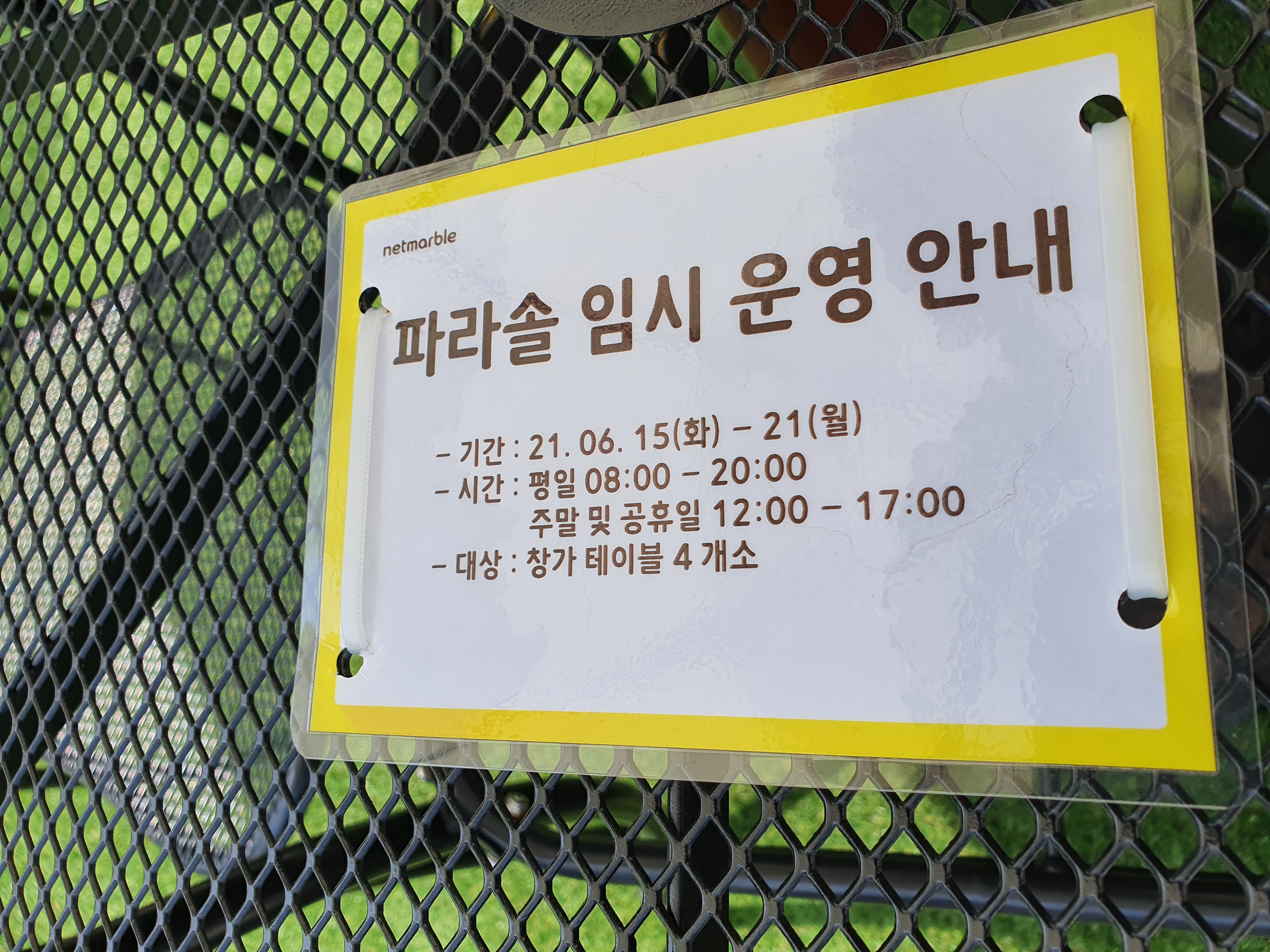다만.. 요즘 볕이 뜨거워서, 모든 테이블에 파라솔이 설치되어 있으면 정말 좋겠다.