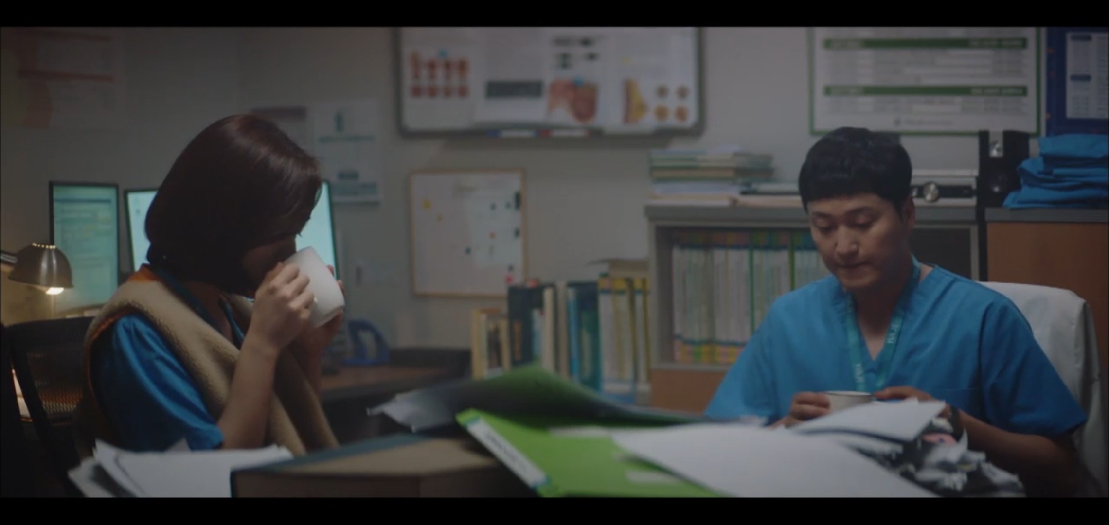 슬기로운 의사생활 10화 : 비오는 이른 아침, 익준 고백 후 비구경, 선이 없어지던 창문, 커피와 빗소리 - 좋아서 여러번 돌려 봤던 장면 고백 아닌 고백을 한 익준이가 당황한 송화를 배려해준다.