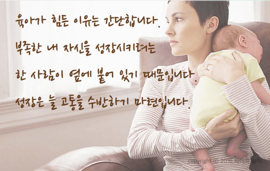 육아는 힘들어요, 엄마의 마음 관리 (이미지와 글 출처 : 차이의 놀이앱) 본문