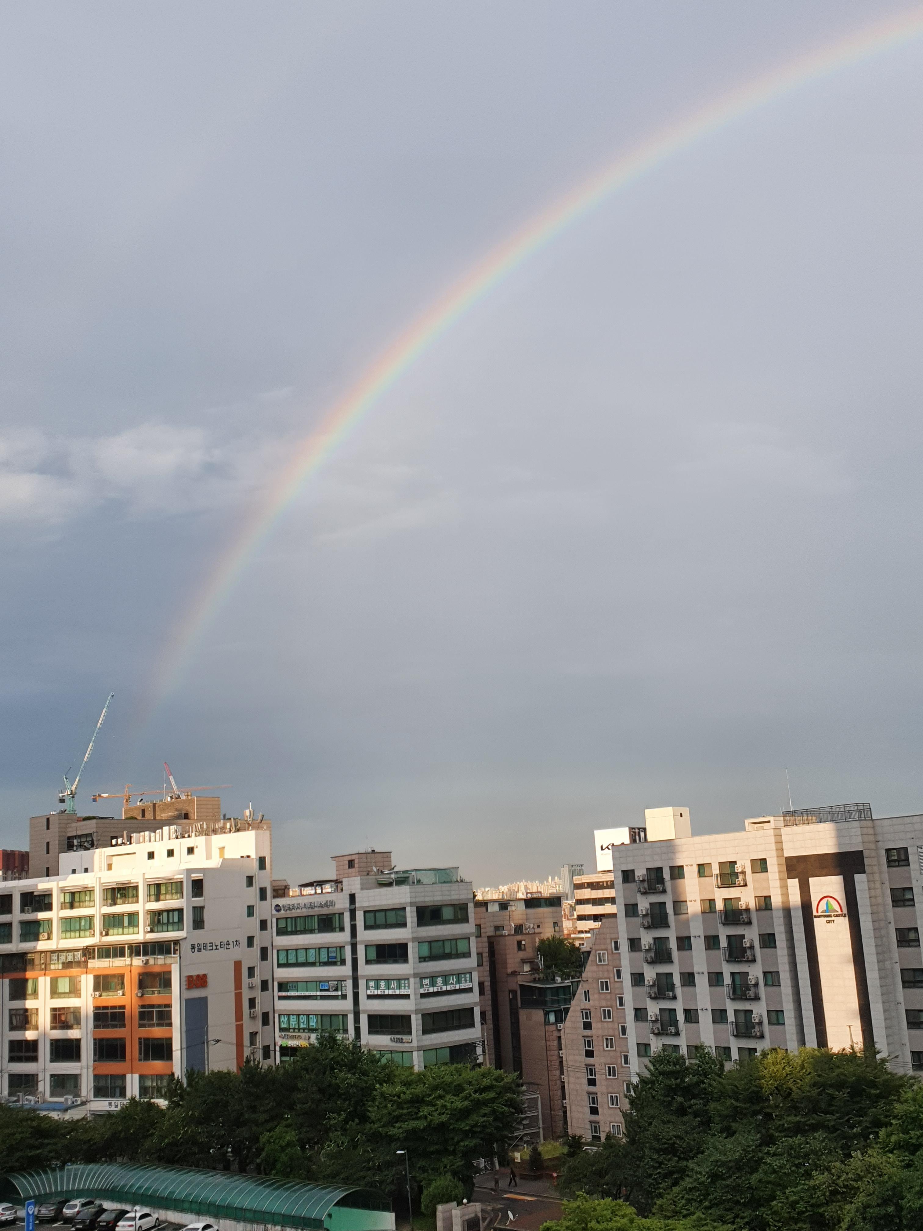거짓말처럼 예쁜 무지개가 회색 하늘에 떠 있었다.