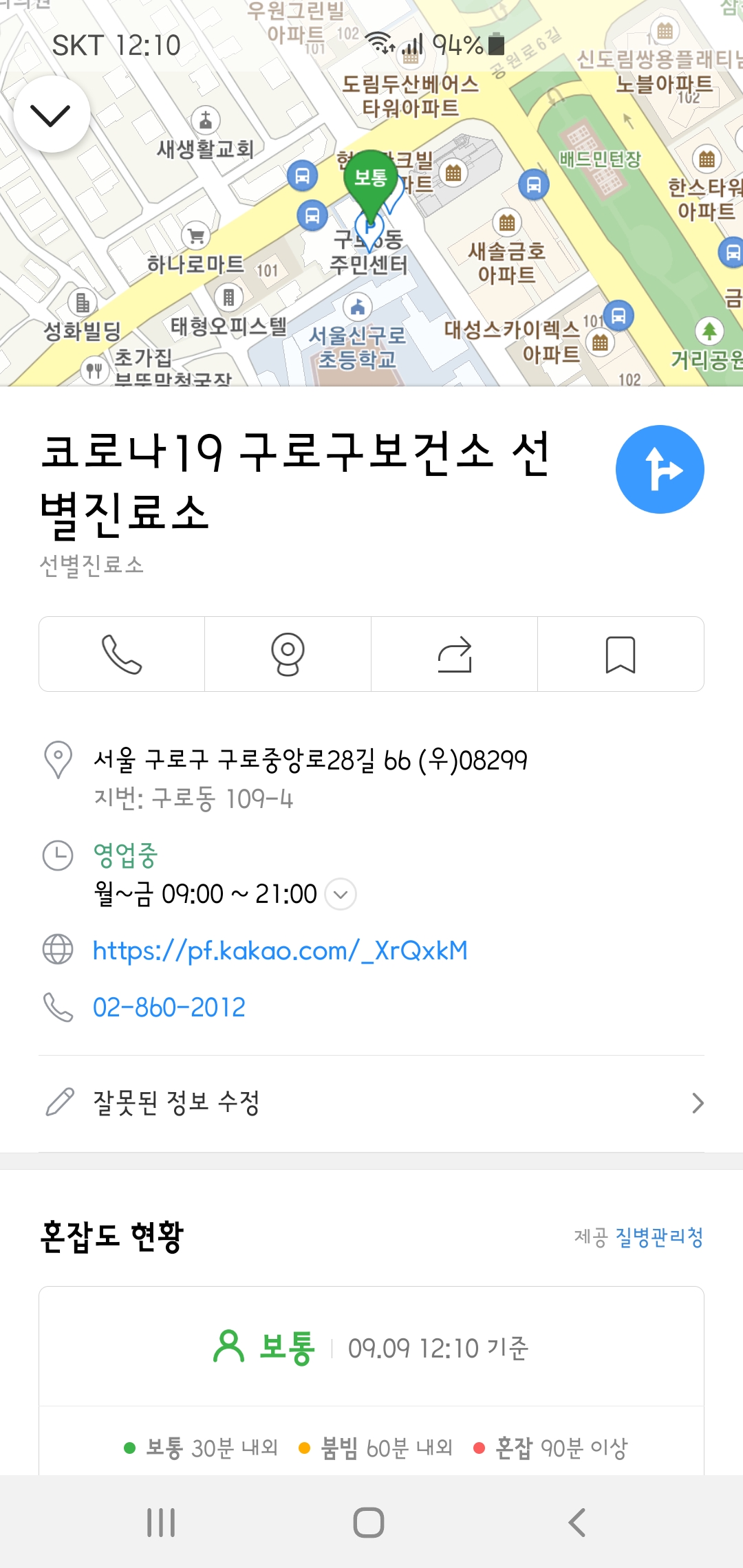 카카오맵, 선별진료소 혼잡도 확인 본문