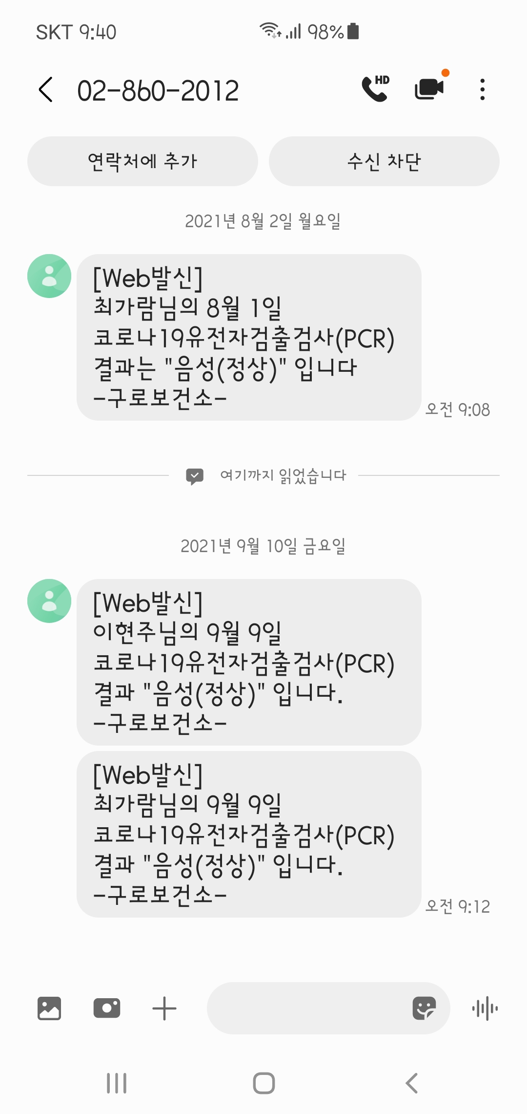코로나 완치 후 보건소 PCR 재검사 결과 : 음성(정상) 입니다. 본문