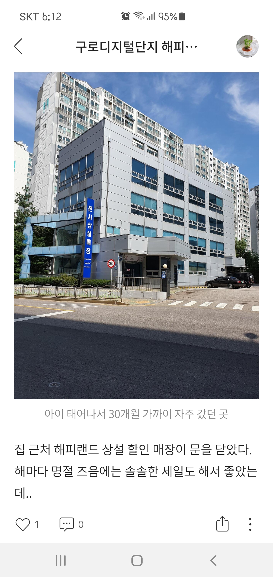 집 근처 해피랜드 상설 할인 매장이 문을 닫았다. 해마다 명절 즈음에는 솔솔한 세일도 해서 좋았는데.. 아쉽다. 본사 이전 때문이라던데... 코로나 때문에 못가본지 꽤 되긴 했다. 아이가 34개월