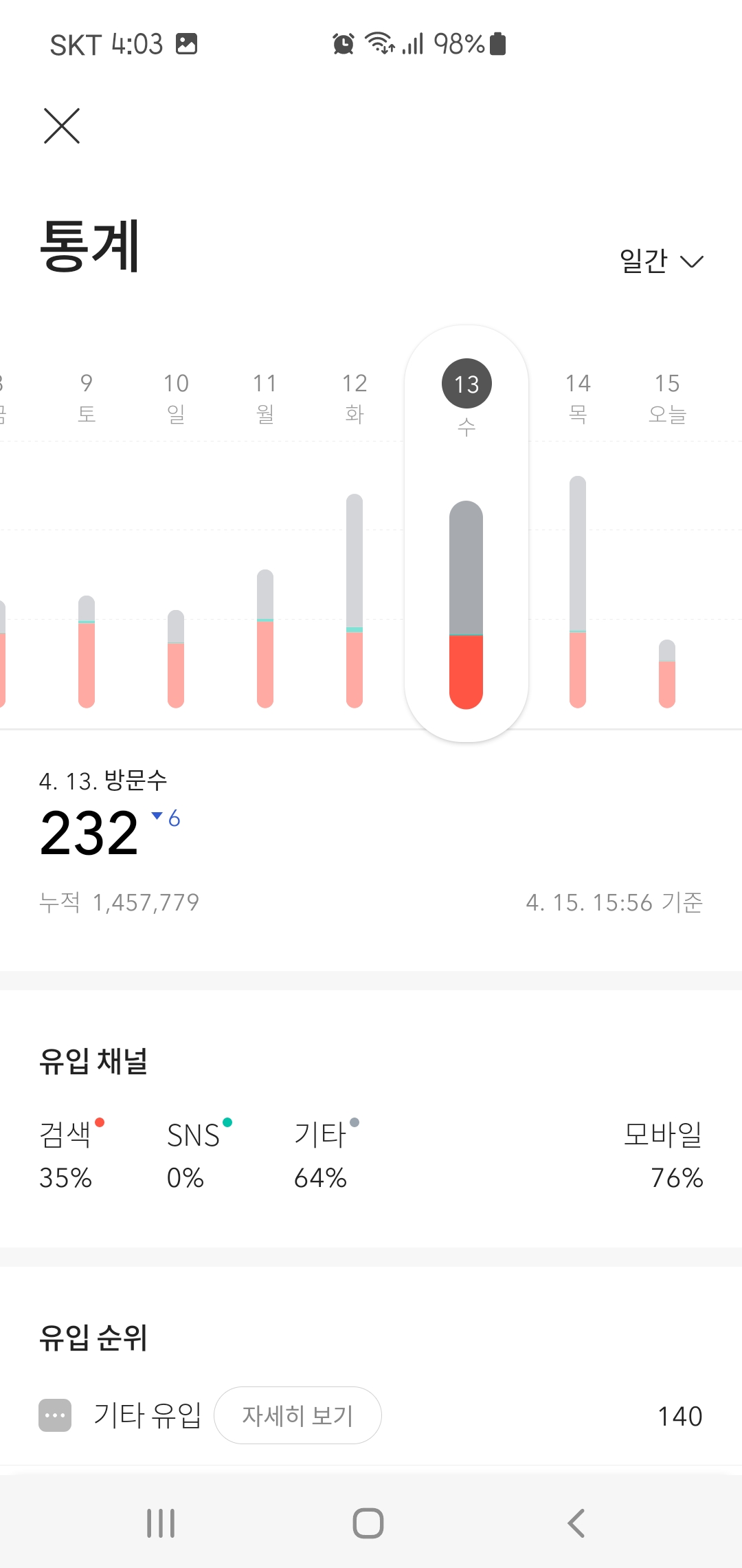 티스토리 방문자수도 동반 상승했다.