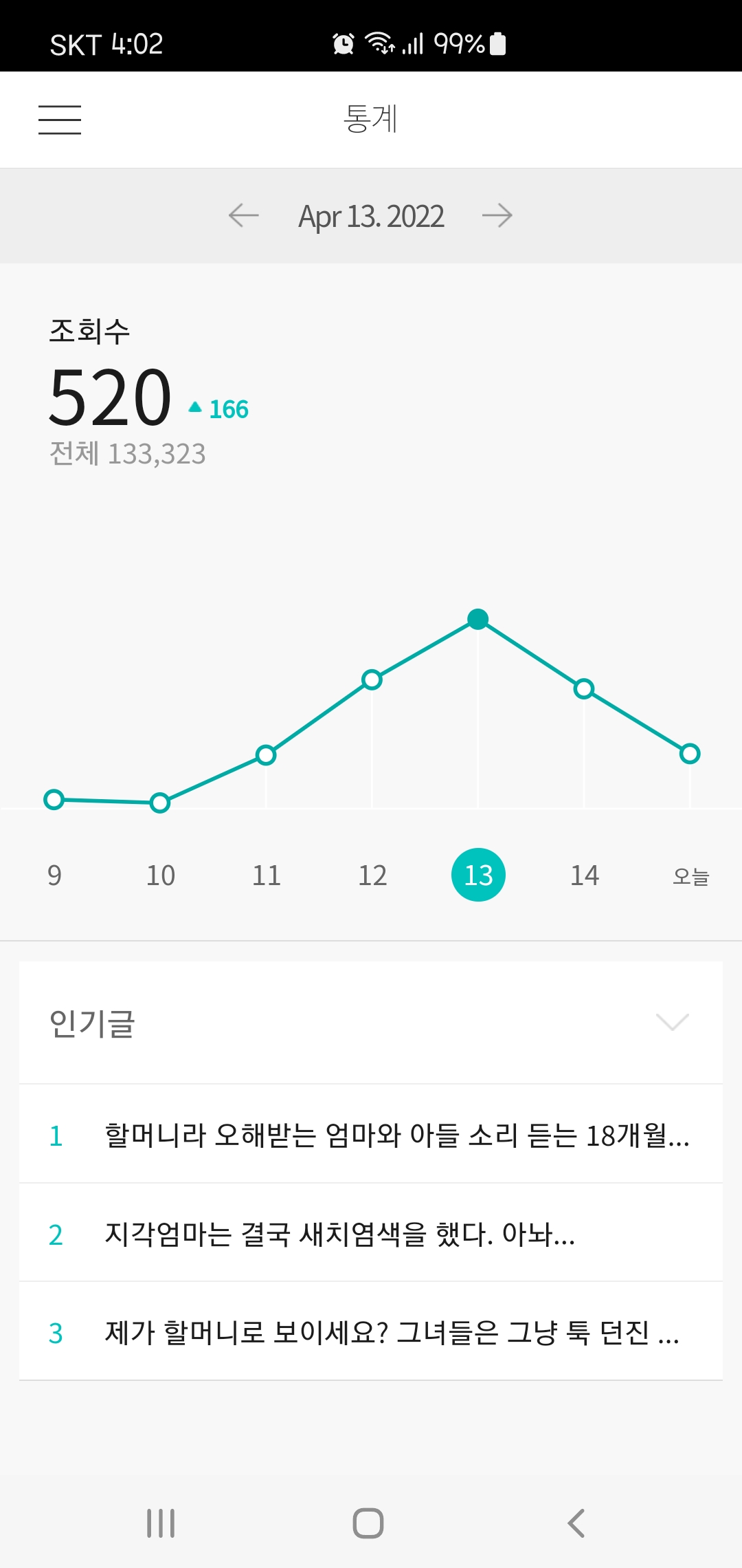 갑자기 브런치앱에 옛날글 조회수가 폭발/ 이유는 모름 본문