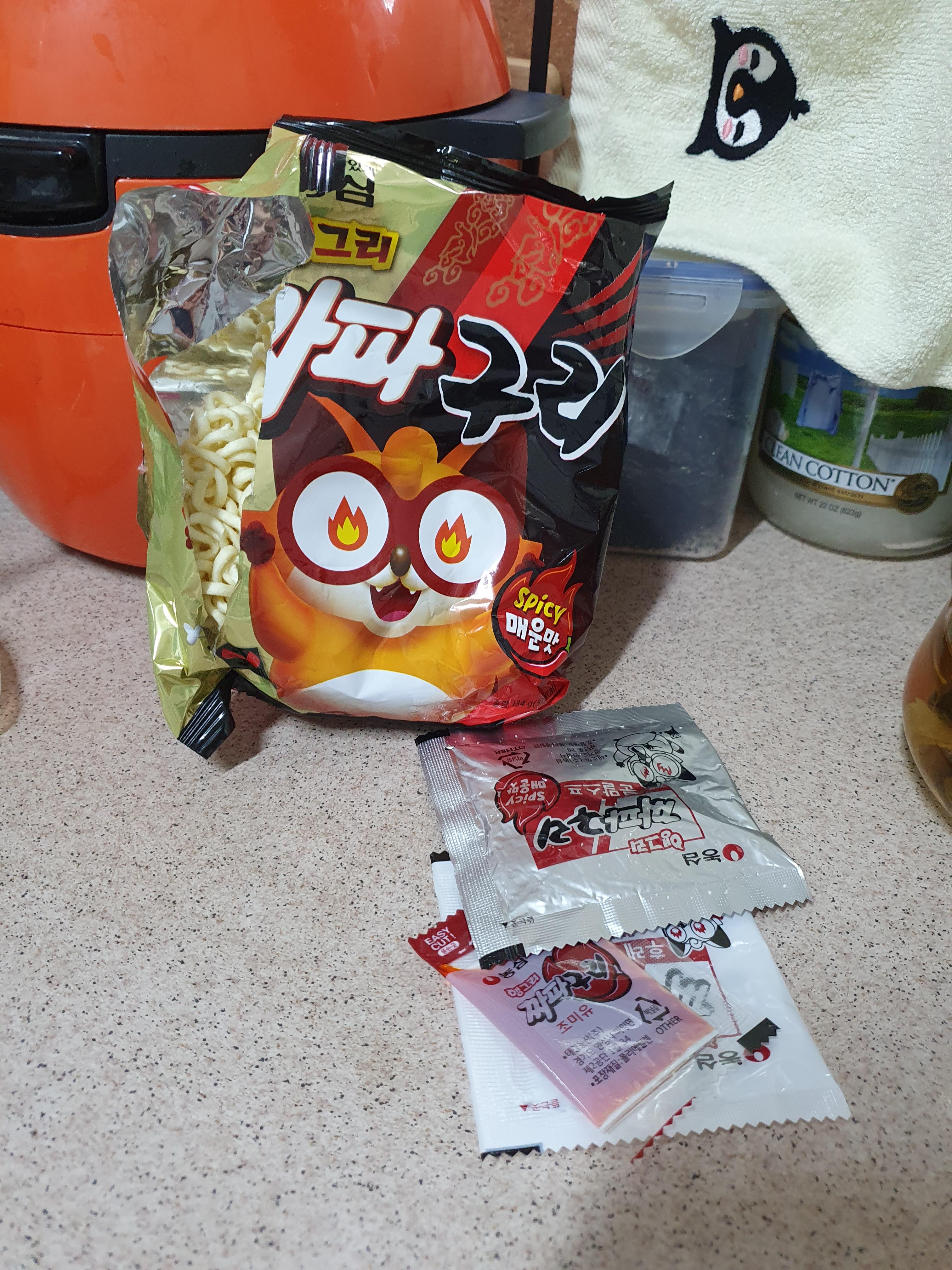 농심 건면 : 칼칼하니 맛있네요. 면이 다르긴 하네요. 건면을 먹었다. 튀기지 않은 특이한 면빨이라고 하길래 맛이 궁금해서 주문했다. 굉장히 딱딱한 면 말고도 액상스프가 하나 더 있는게 특이