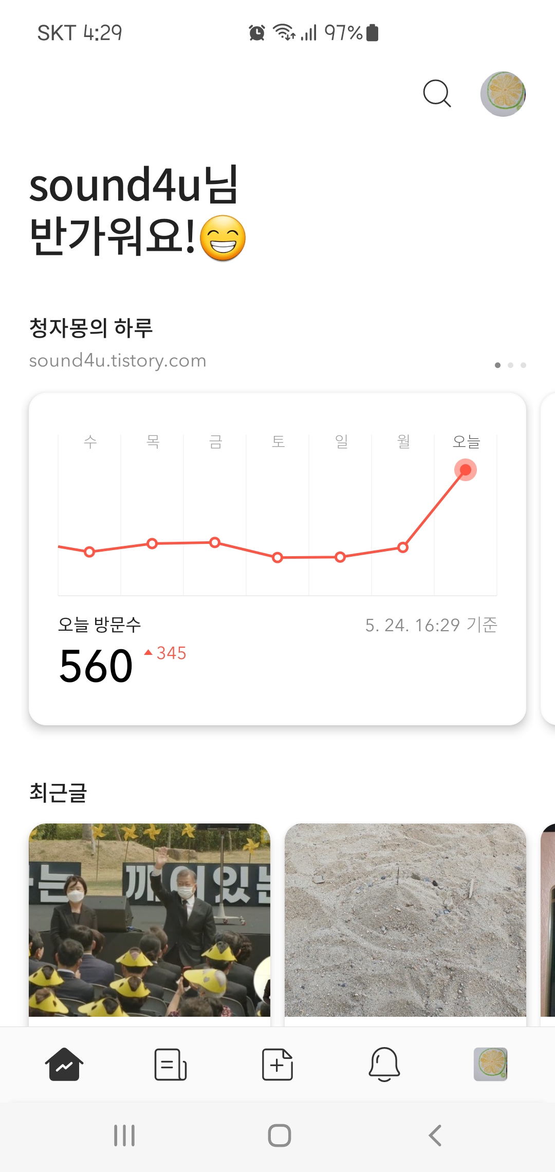 한 일주일 내 블로그가 미쳤다. 글 하나가 운좋게 검색이 잘 됐다. 하루종일 기분이 좋았다. 며칠내내 그랬다. 얼마나 갈까? 했는데.. 딱 일주일만에 훅 떨어졌다. 다른 글들이 치고 올라와서 밀