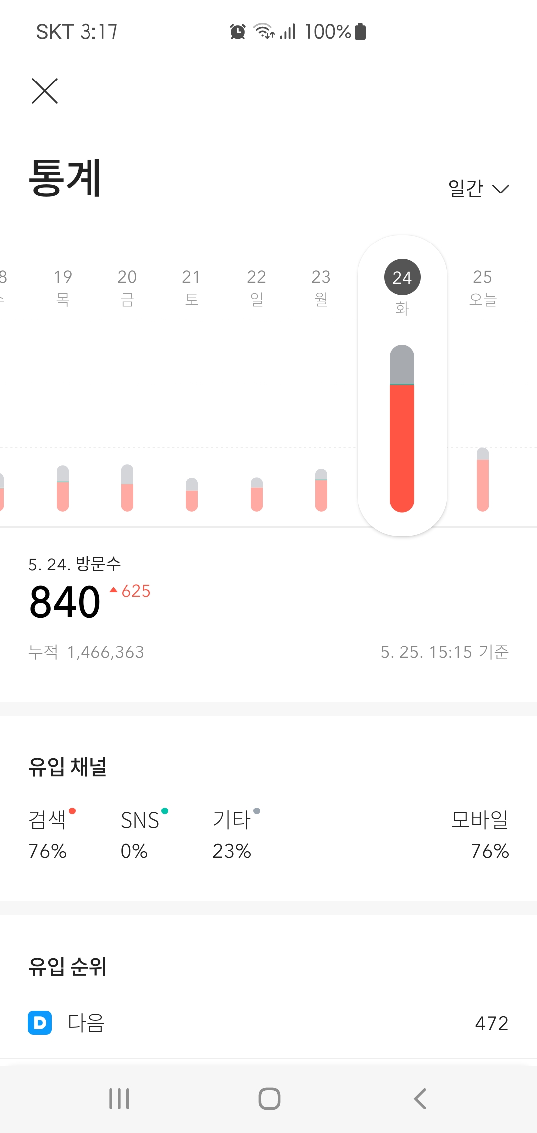 어제 블로그 최종방문자수는 840명이었다. 평소라면 절대 상상도 할 수 없는 숫자였다.