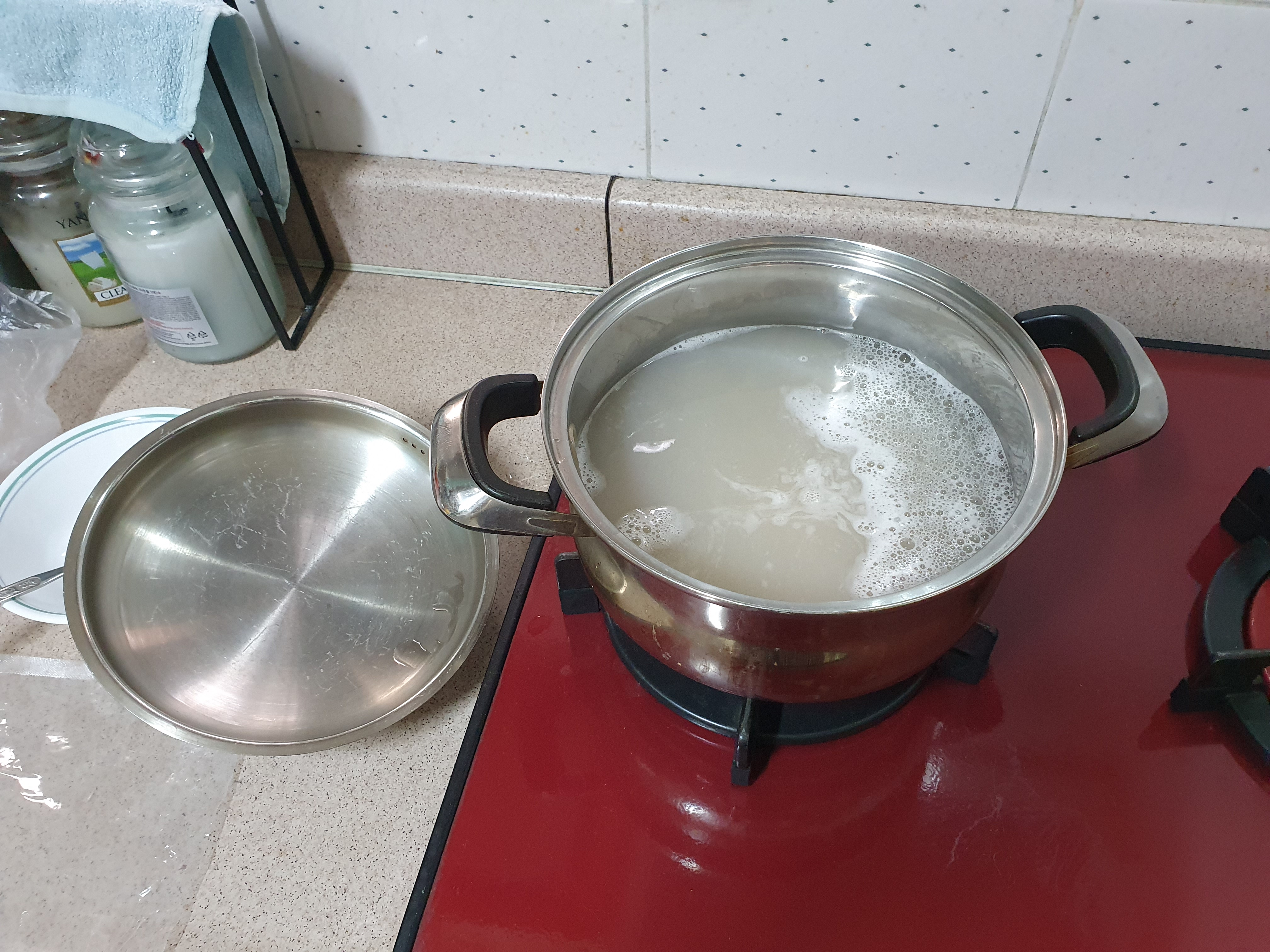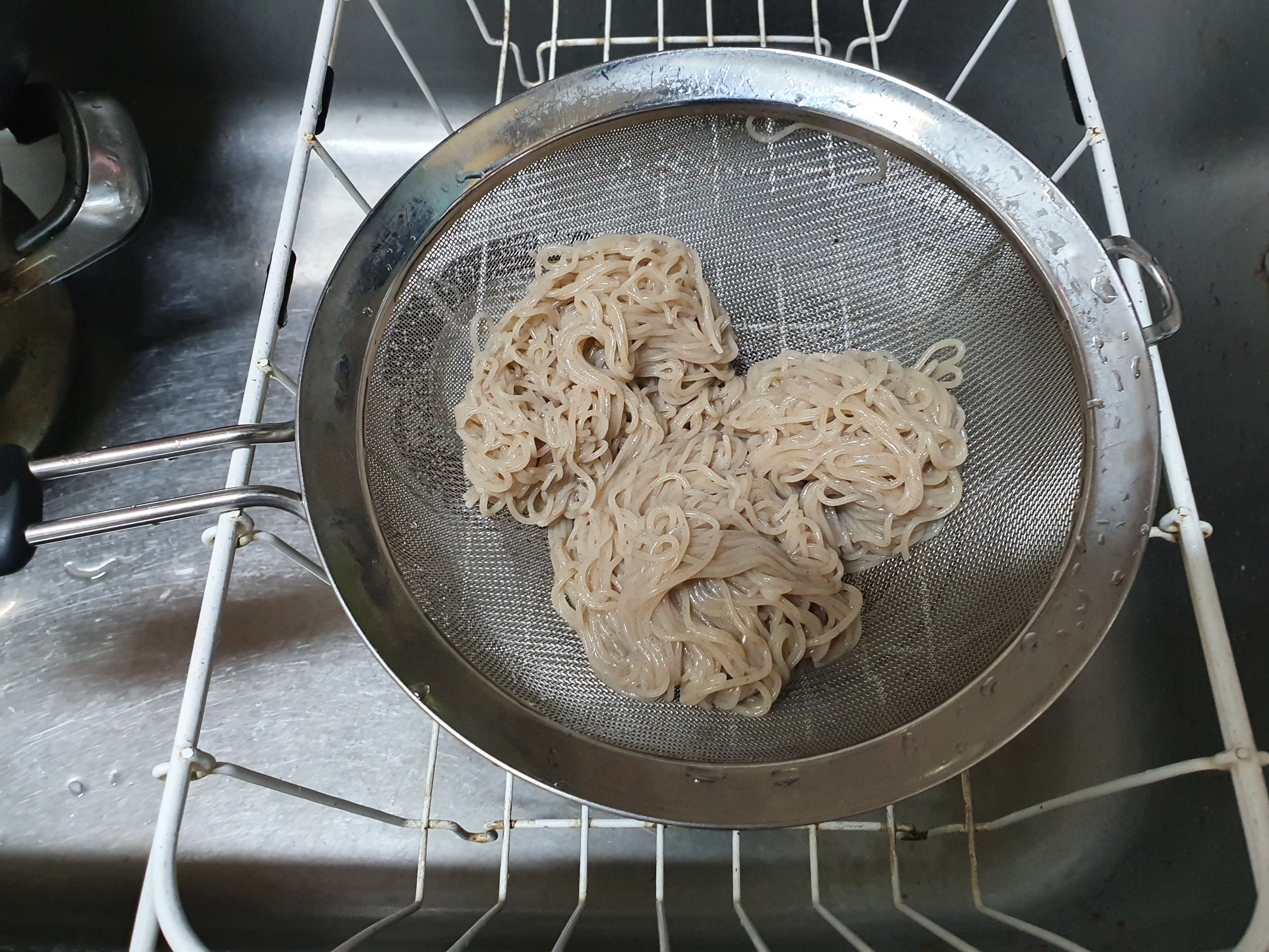 암튼 많은 물을 끓이다가 면을 넣었다. 5분 정도 끓였다. 찬물을 2~3번 더 부었다.