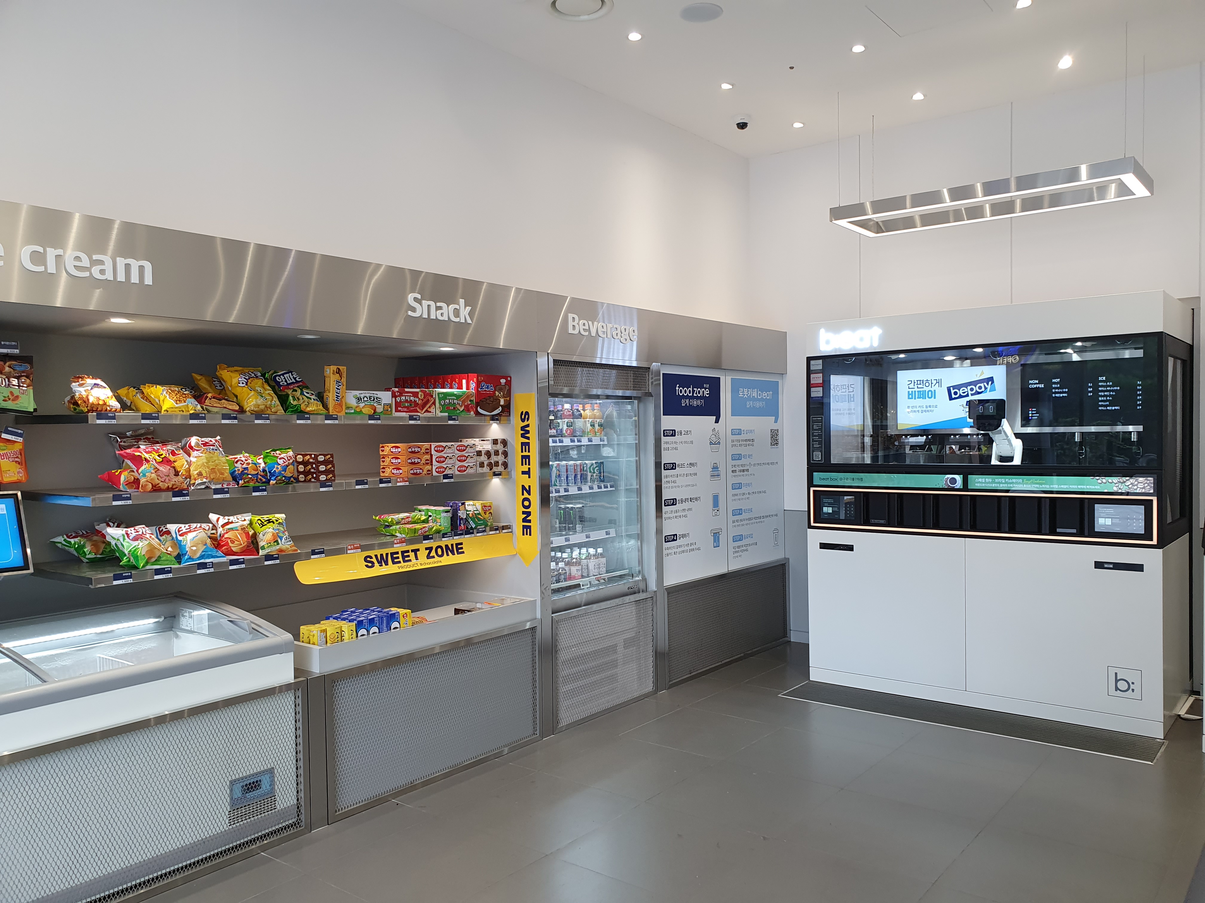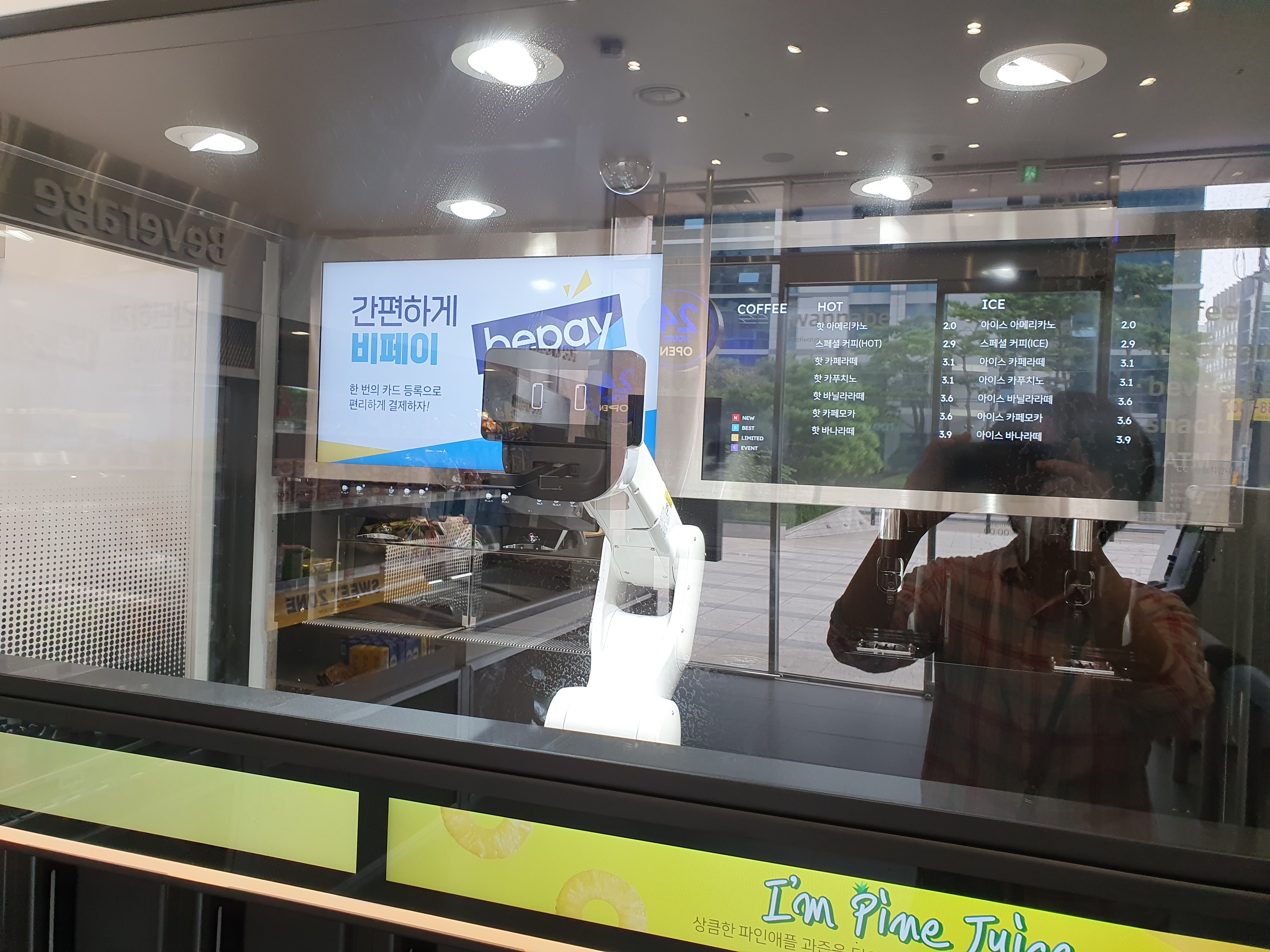 딸친구의 엄마가 말해준 "로보트가 커피를 내려주는" 편의점에 갔다. 무인편의점인가보다. 사람은 없고, 로보트가 반겨줬다.