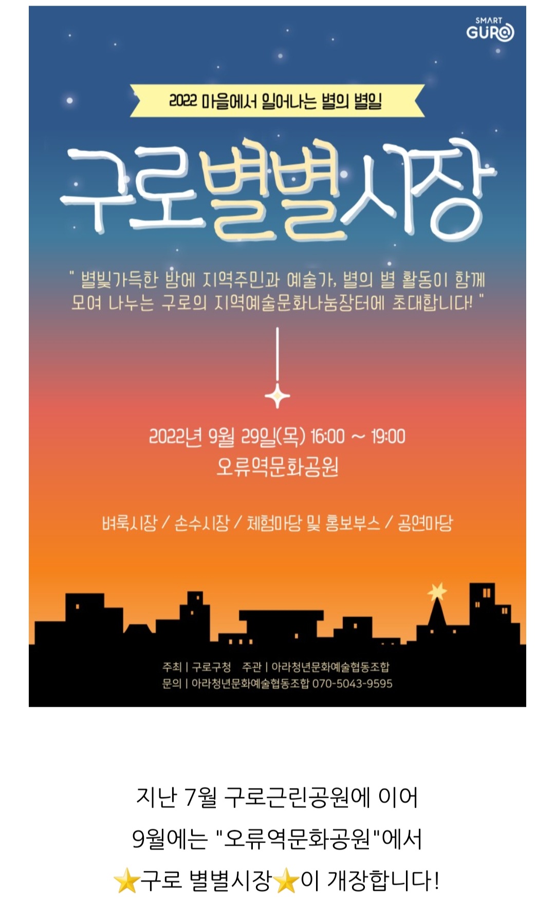 2022 구로별별시장 (9월 29일) : 오후 4시~7시, 오류역문화공원 본문