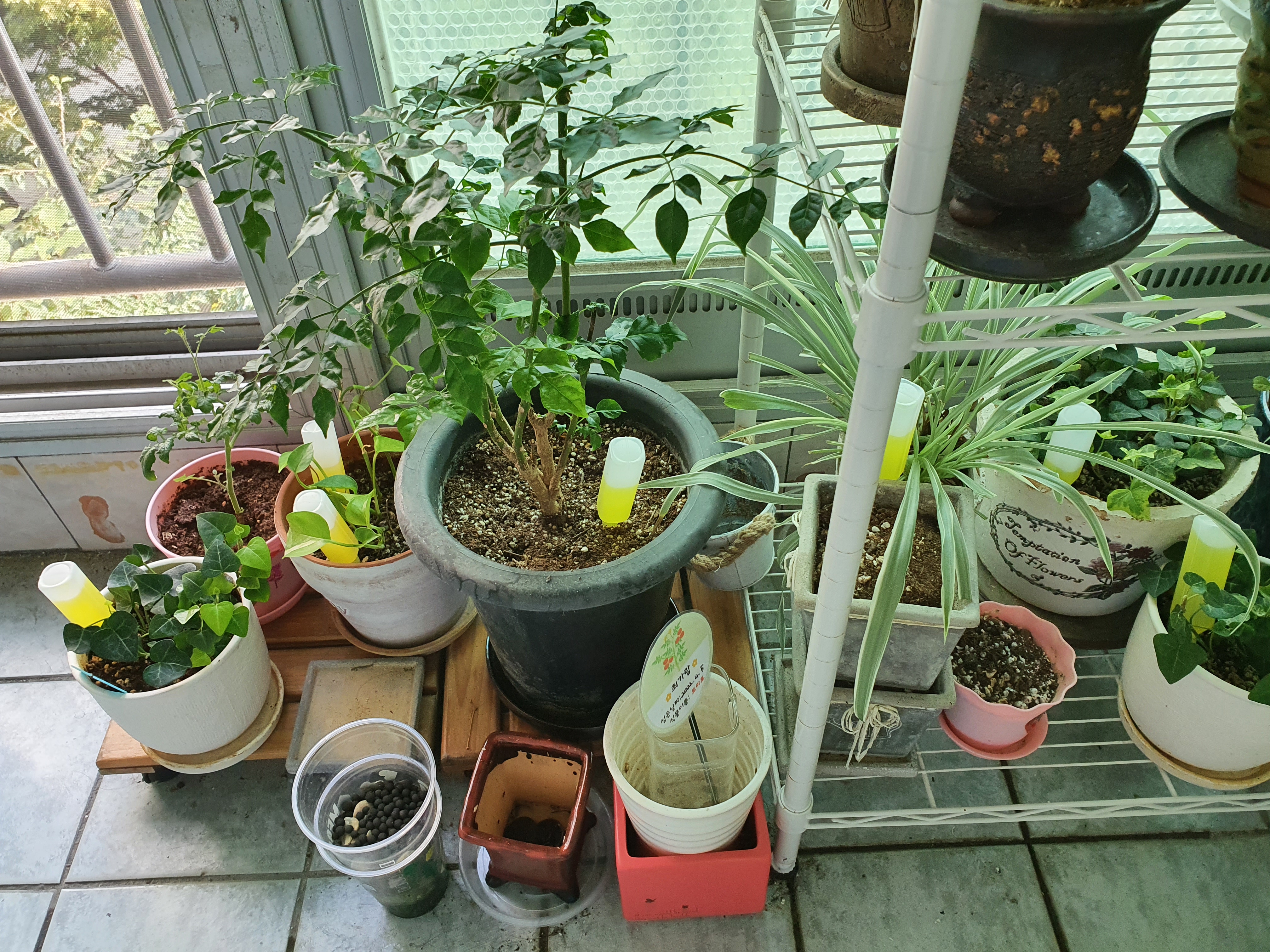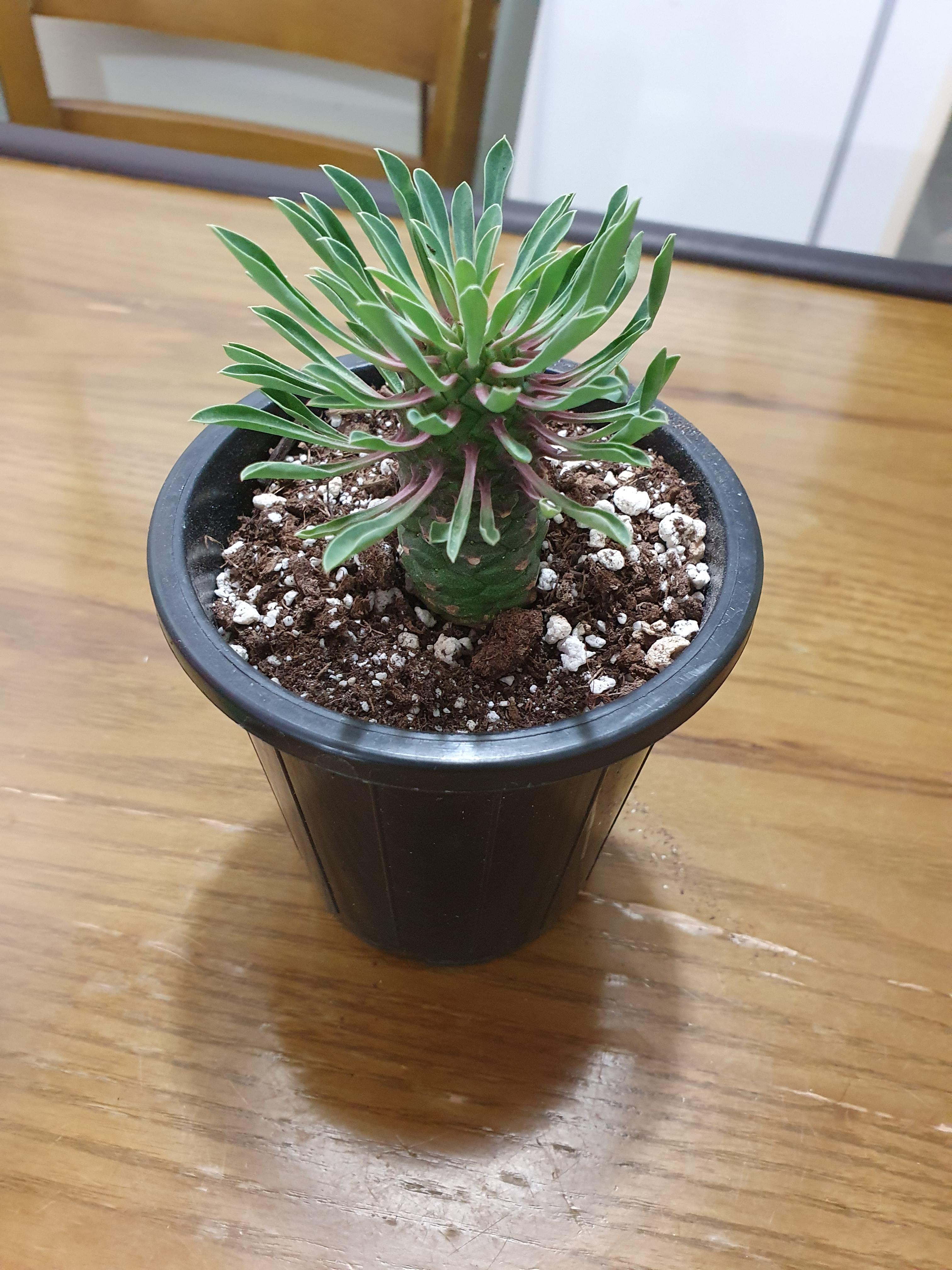 포장 풀다가 잘못해서, 가위로 잎을 조금 잘랐다. 그랬더니 하얀물이 나와서 당황했다. 미안.