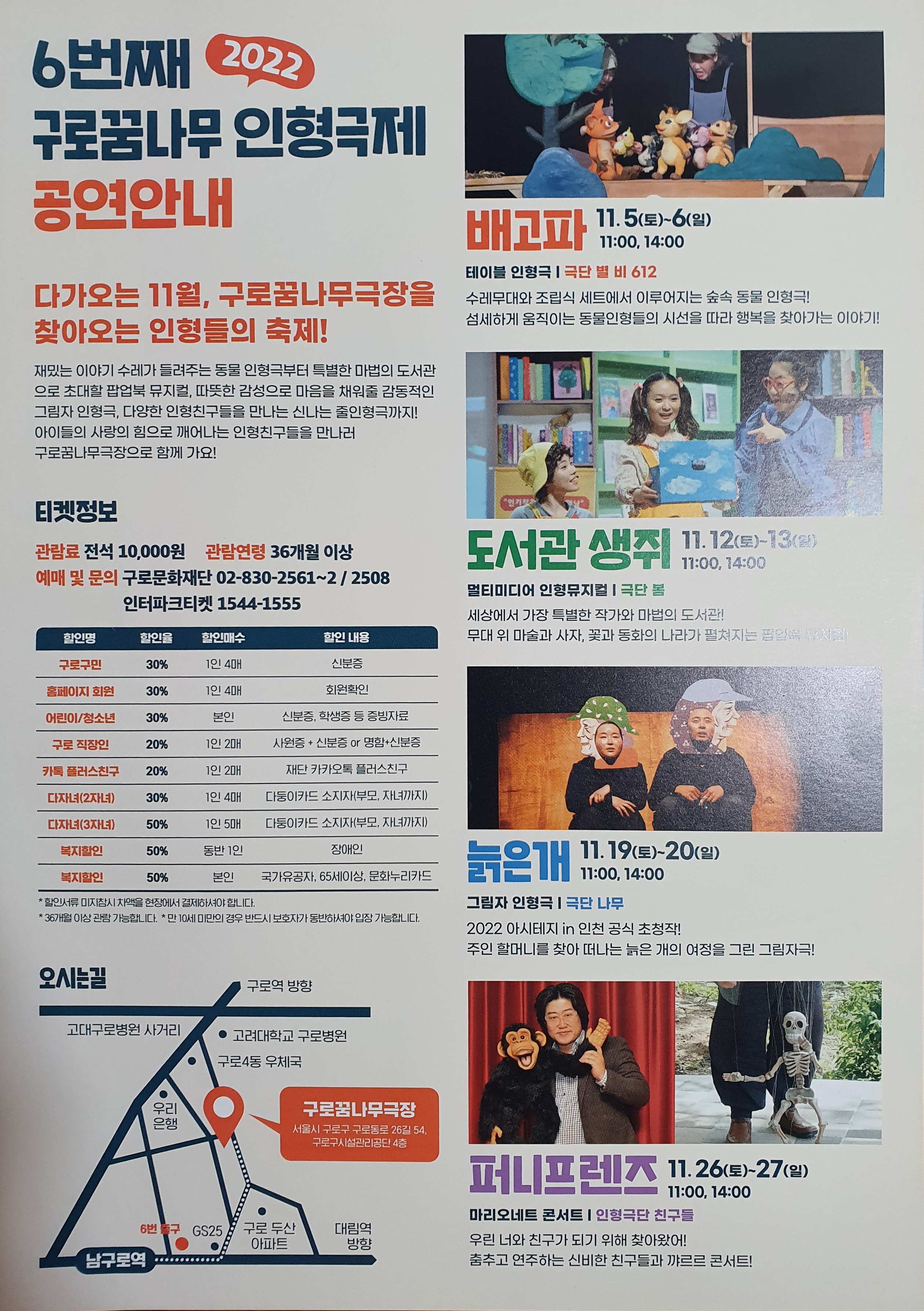 2022 구로꿈나무극장, 6번째 인형극제/ 전단지와 구로구청 홈페이지 링크 본문