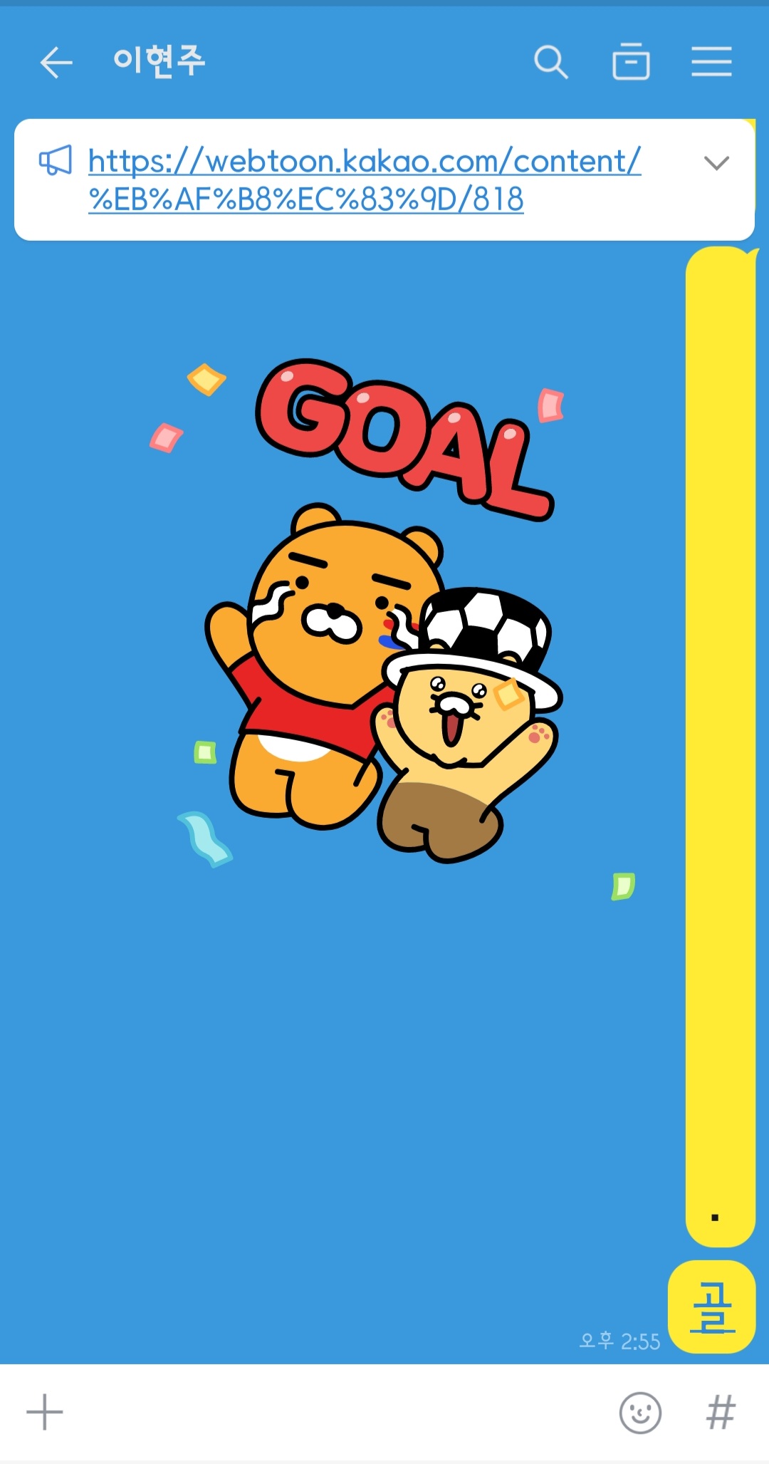 카톡에 '골'을 입력 : 월드컵 기념 이스터에그