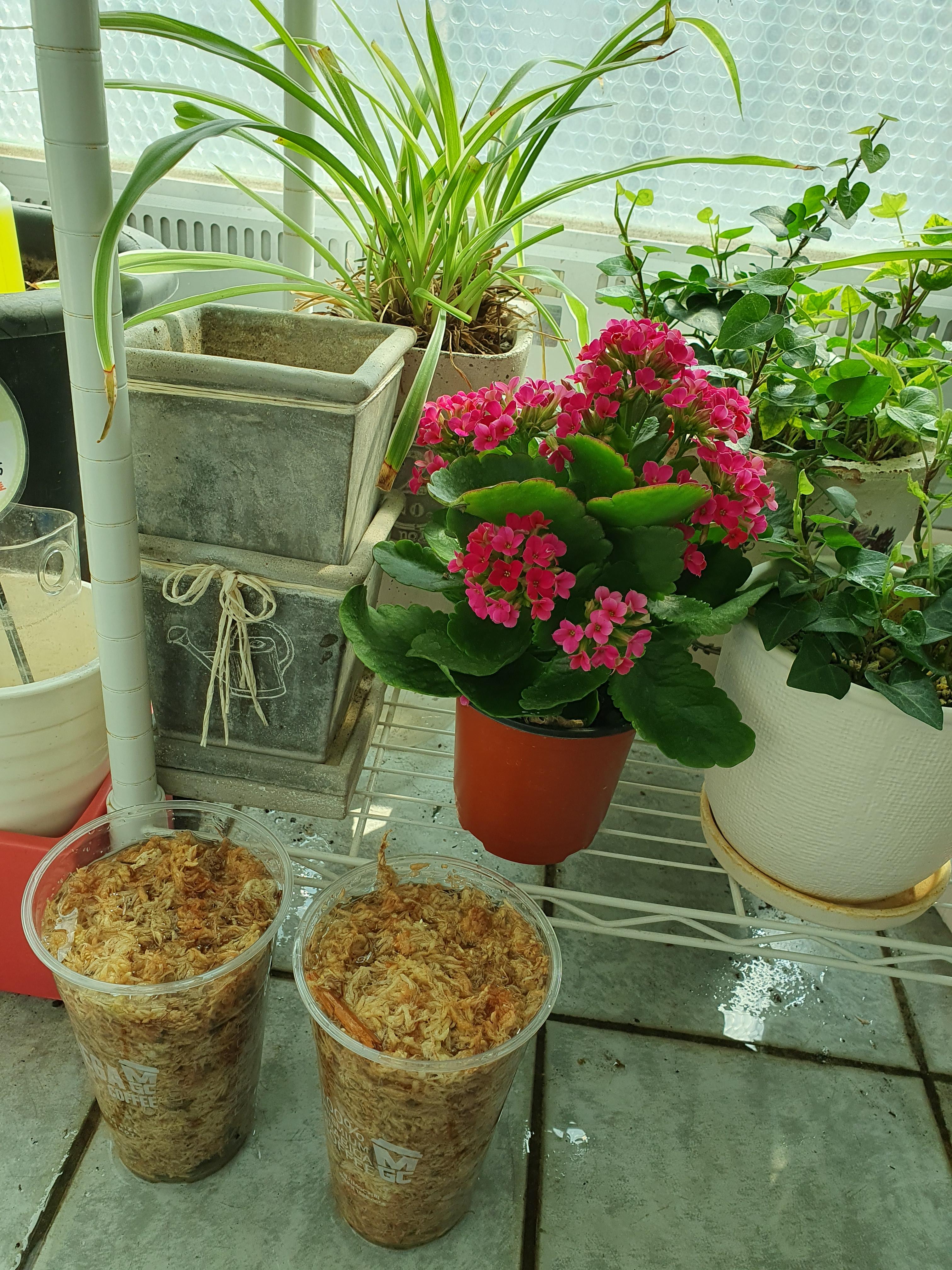 미니호접란 수태를 갈아주려고, 수태를 미리 물에 담궈놨다.