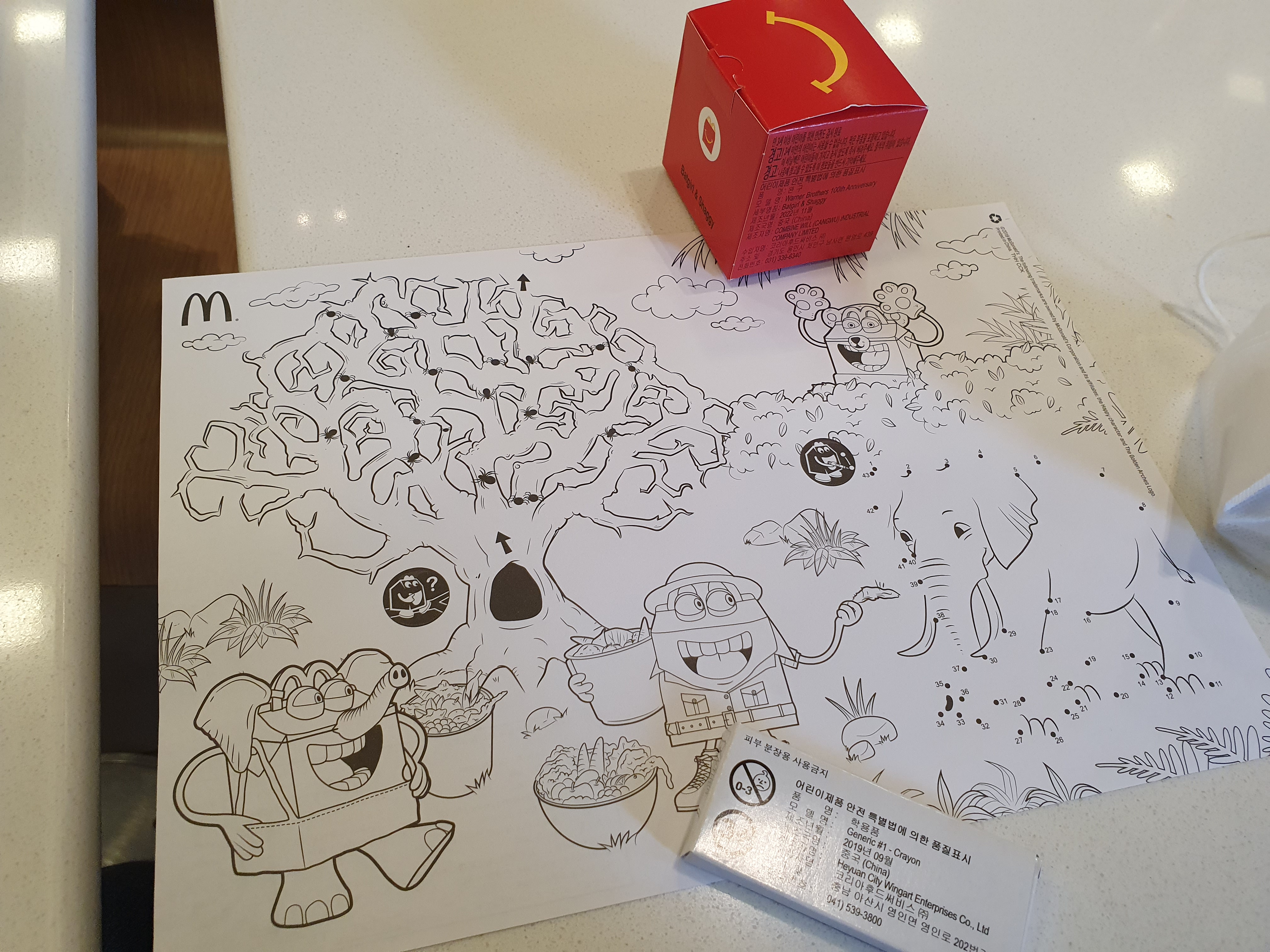 2번짼가 3번째 시도해도 카드결제가 안 되서 돌고 있는데, 직원 한명이 더 와서 딸에게 색칠 종이와 크레파스를 주고 갔다.