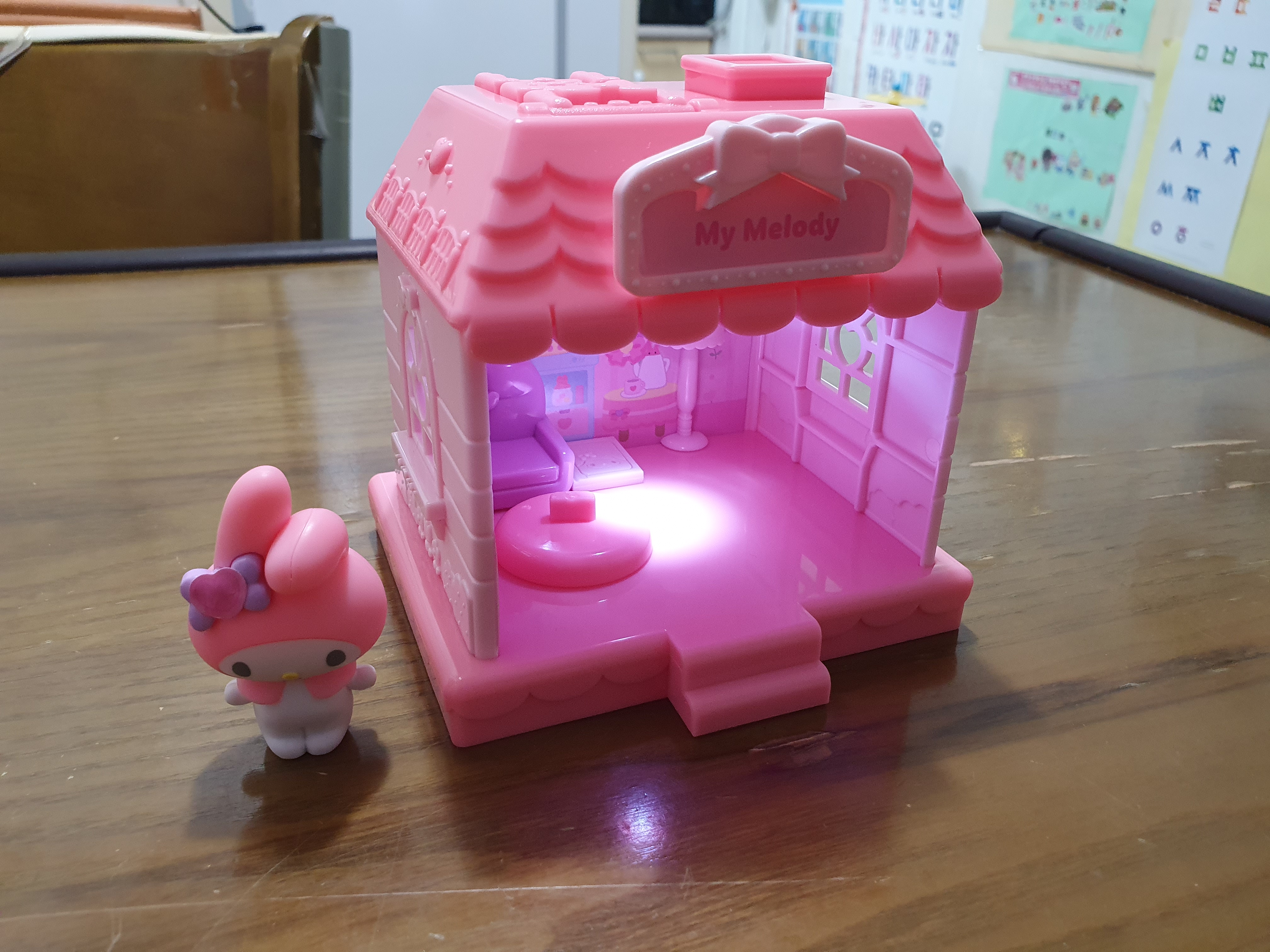 마이멜로디 인형집을 큰 맘 먹고 사줬다. 계산할 때 엄청 놀랐다. 왜 이렇게 비싸. 요렇게 작은게!!