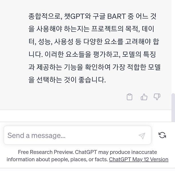 - 챗GPT는 답변이 타이핑 치는 것처럼 한글자씩 입력되다가 답을 보여줘서, 더 대화하는 느낌이 든다.
