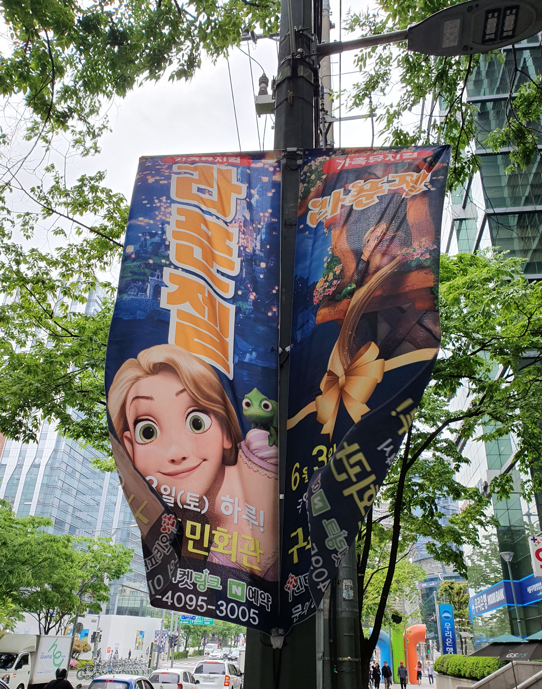 라푼젤 자체가 내용이 재미나거나 웃기지는 않다. 몇분 되지 않아, 아이는 무섭다고 하다가 급기야 울음을 터뜨렸다. 이미 저쪽 객석의 아이들과 엄마아빠들은 나간 상태였다.