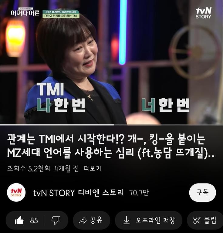 마침 어제 본 이금희 아나운서의 영상에서 본 내용이 생각나서 이어본다. ["사람과의 관계는 TMI에서부터 시작된다."]