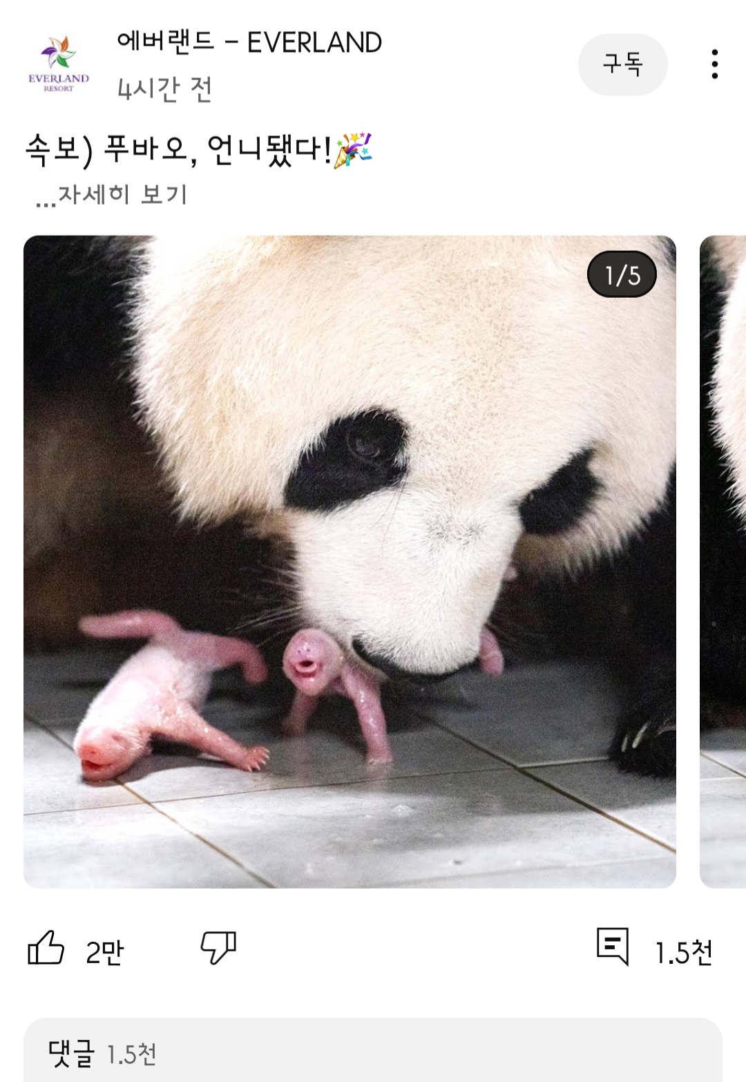 지난주 금요일(7월 7일)(그러고보니 7이 2번 들어가다)에 에버랜드의 엄마 판다인 아이바오가 쌍둥이를 낳았다고 한다. 어제 유튜브 피드에 올라오길래 알게 됐다.