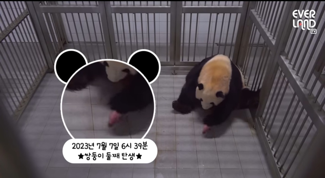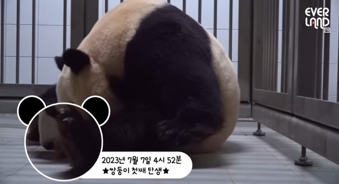 에버랜드 엄마 판다, 아이바오가 쌍둥이를 출산하다 (2023년 7월 7일) : 유튜브 '에버랜드 - EVERLAND' 채널 영상 캡쳐