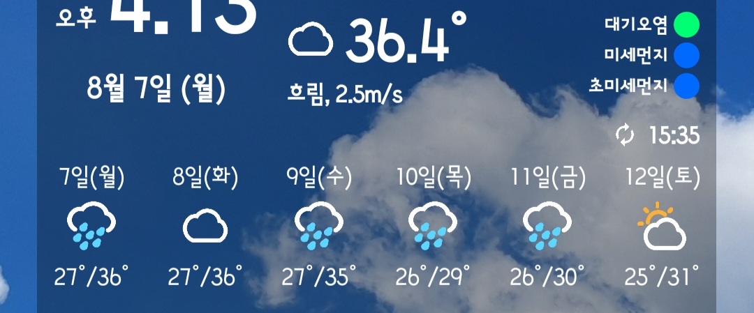 | 33.5도/ 곧 비 다시 시작될 예정 (0) | 2023.07.22 |