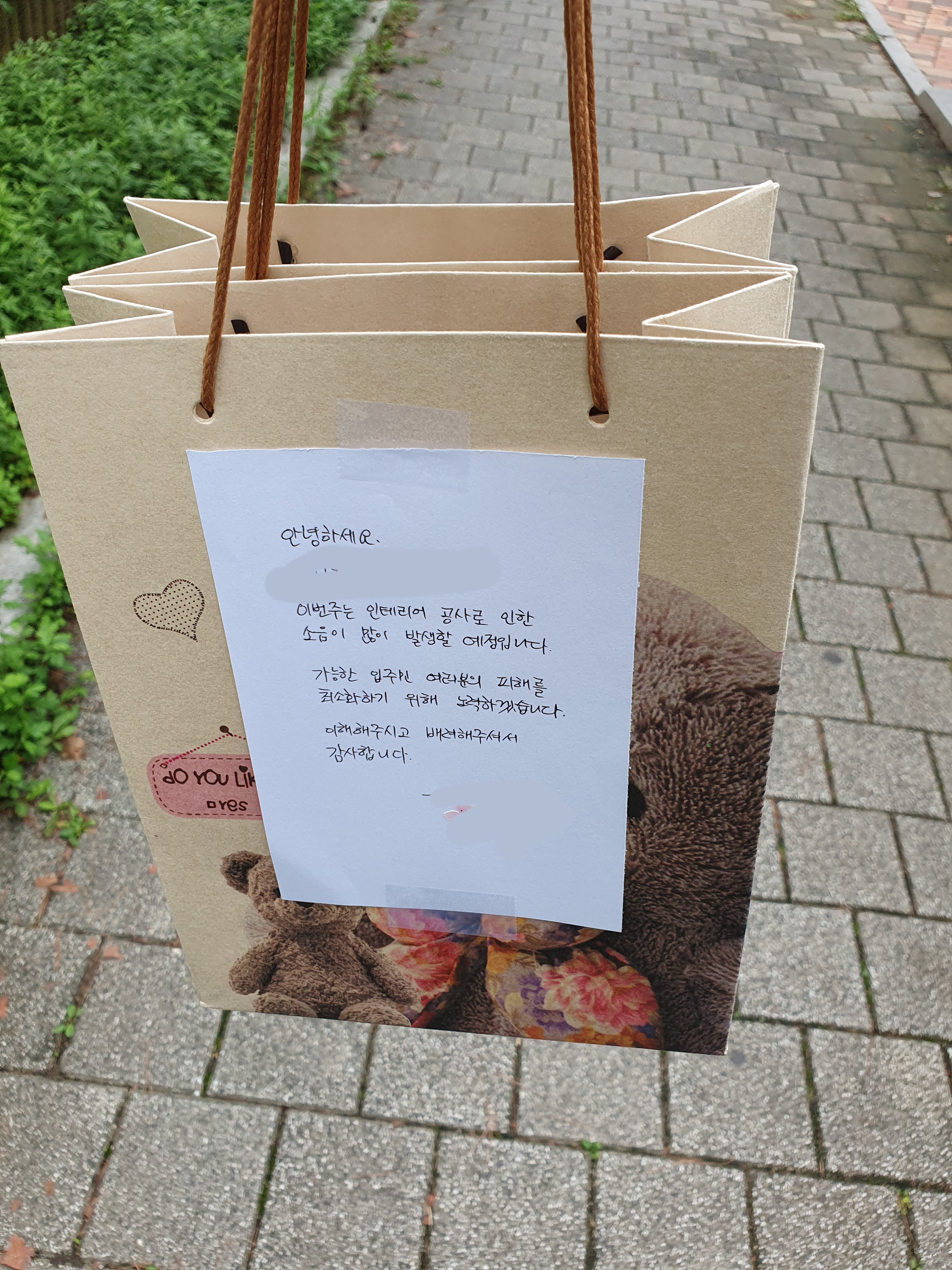 (1)이사 프로젝트 : 인테리어 공사 소음, 죄송해서 주민들께 선물[1]