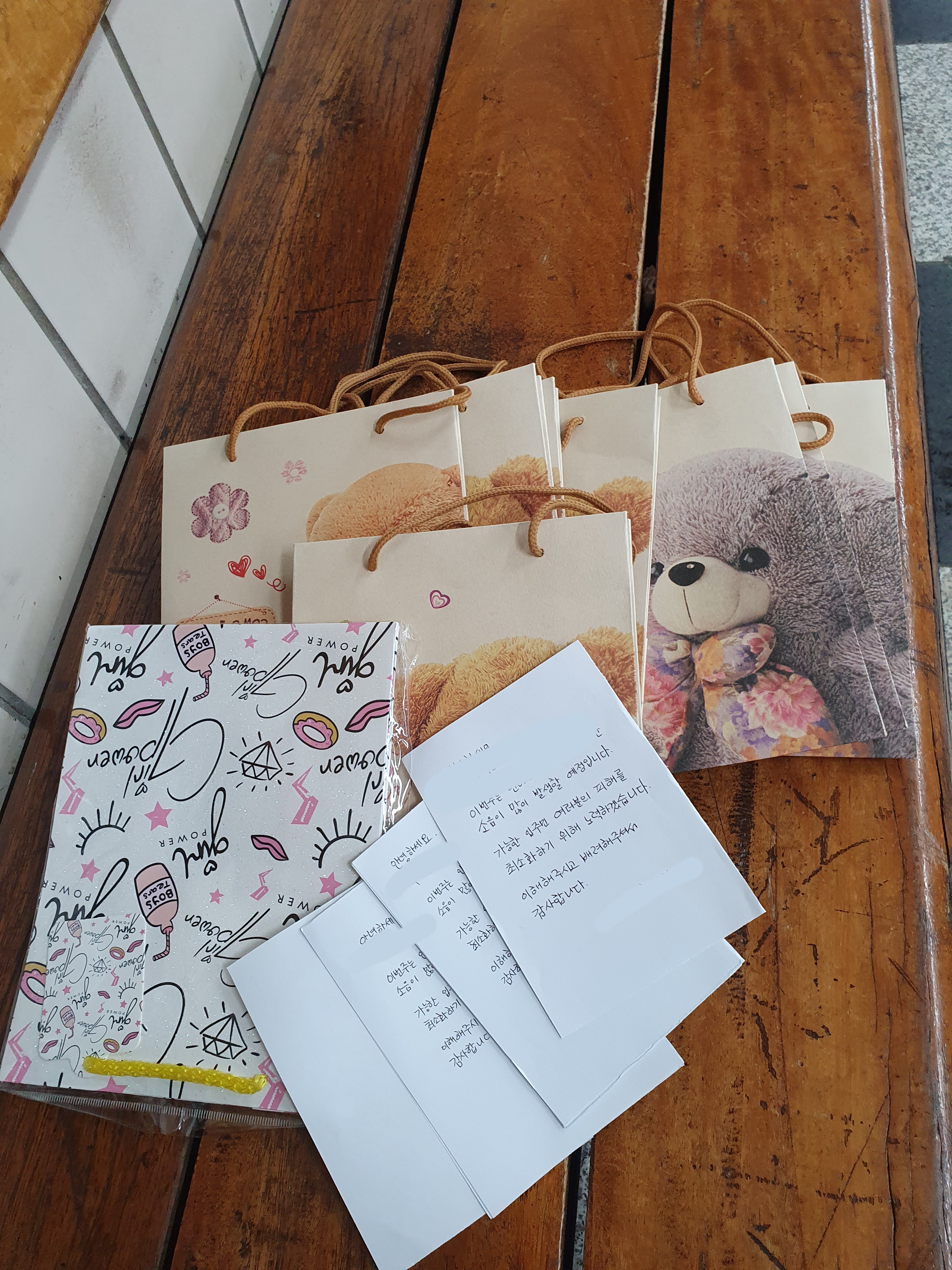 남편이랑 이야기해서, 늦었지만 공사 시작하는 날이라도 선물을 준비해서