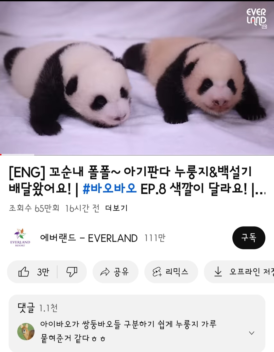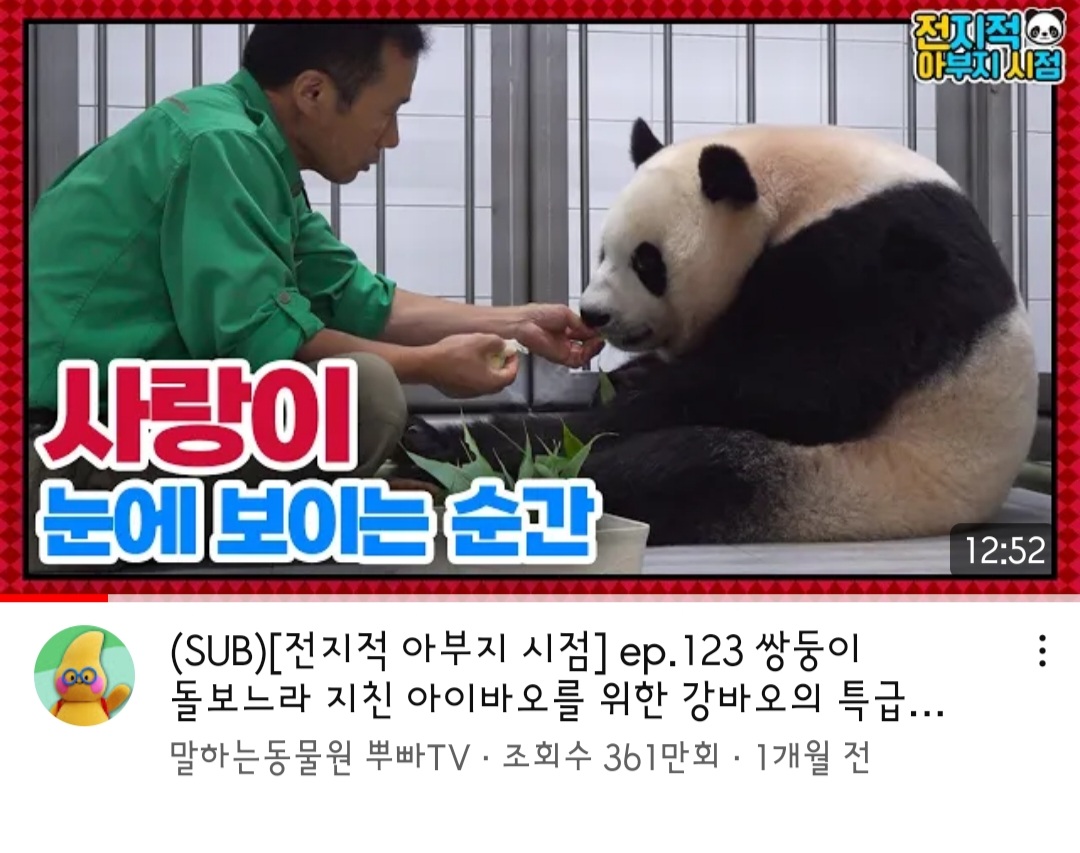 아이바오를 처음 본 건, 3년전 첫째인 푸바오(첫째 판다)를 낳을 때였다. 사실 그 전에 우리나라에 대왕 판다 부부가 있는지도 몰랐다. 그러다가 우연히 유튜브 피드에 뜬 출산 동영상을 봤다.