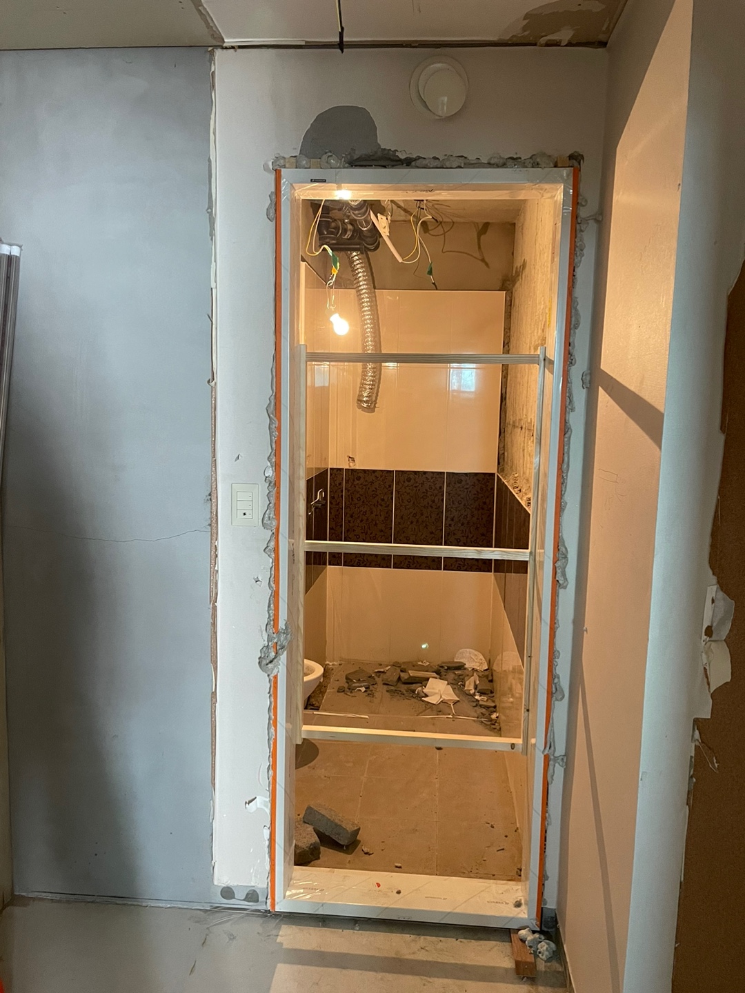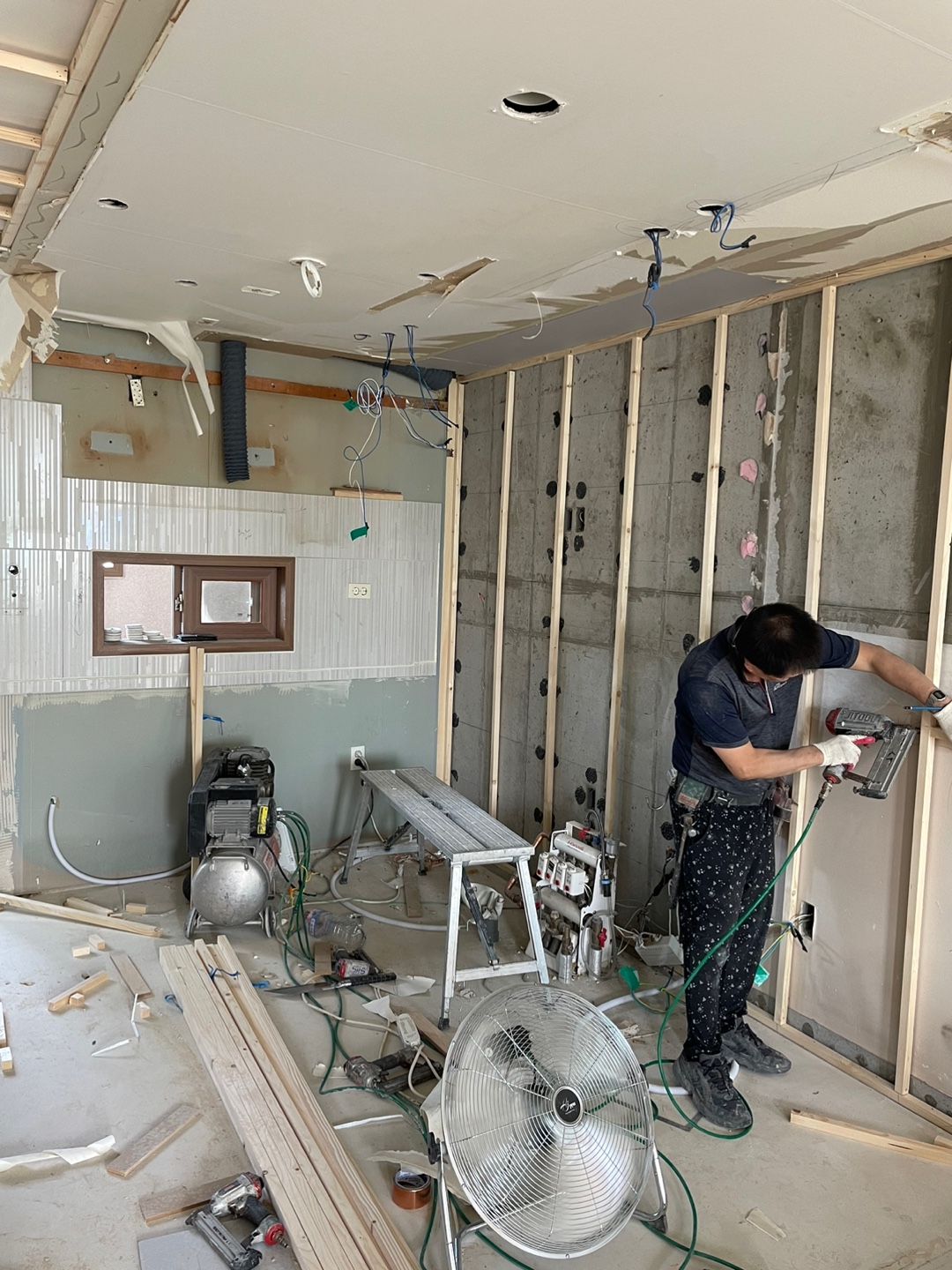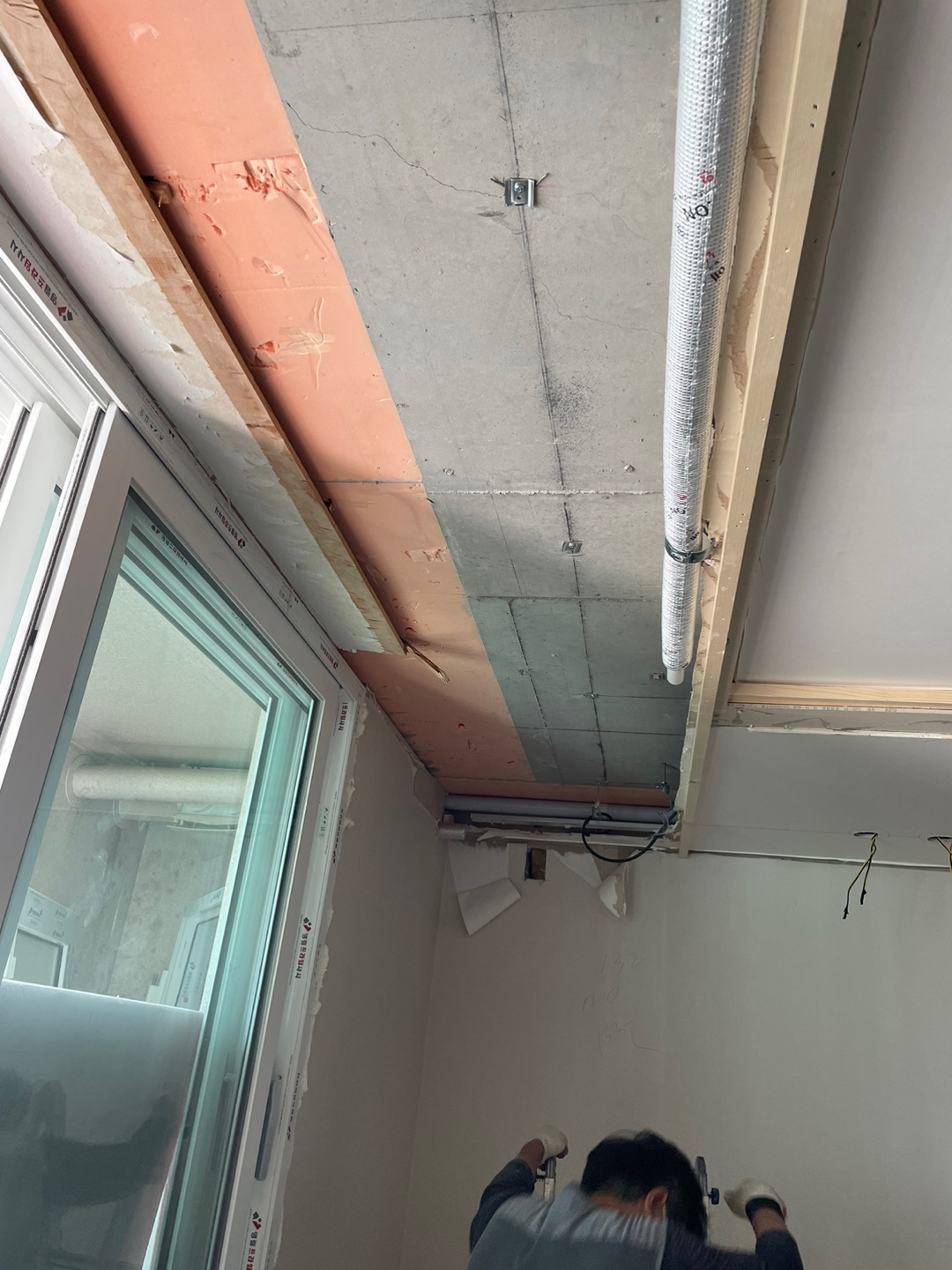 방문 설치와 시스템 에어컨 설치할 수 있도록 천장 작업한 것 같다.