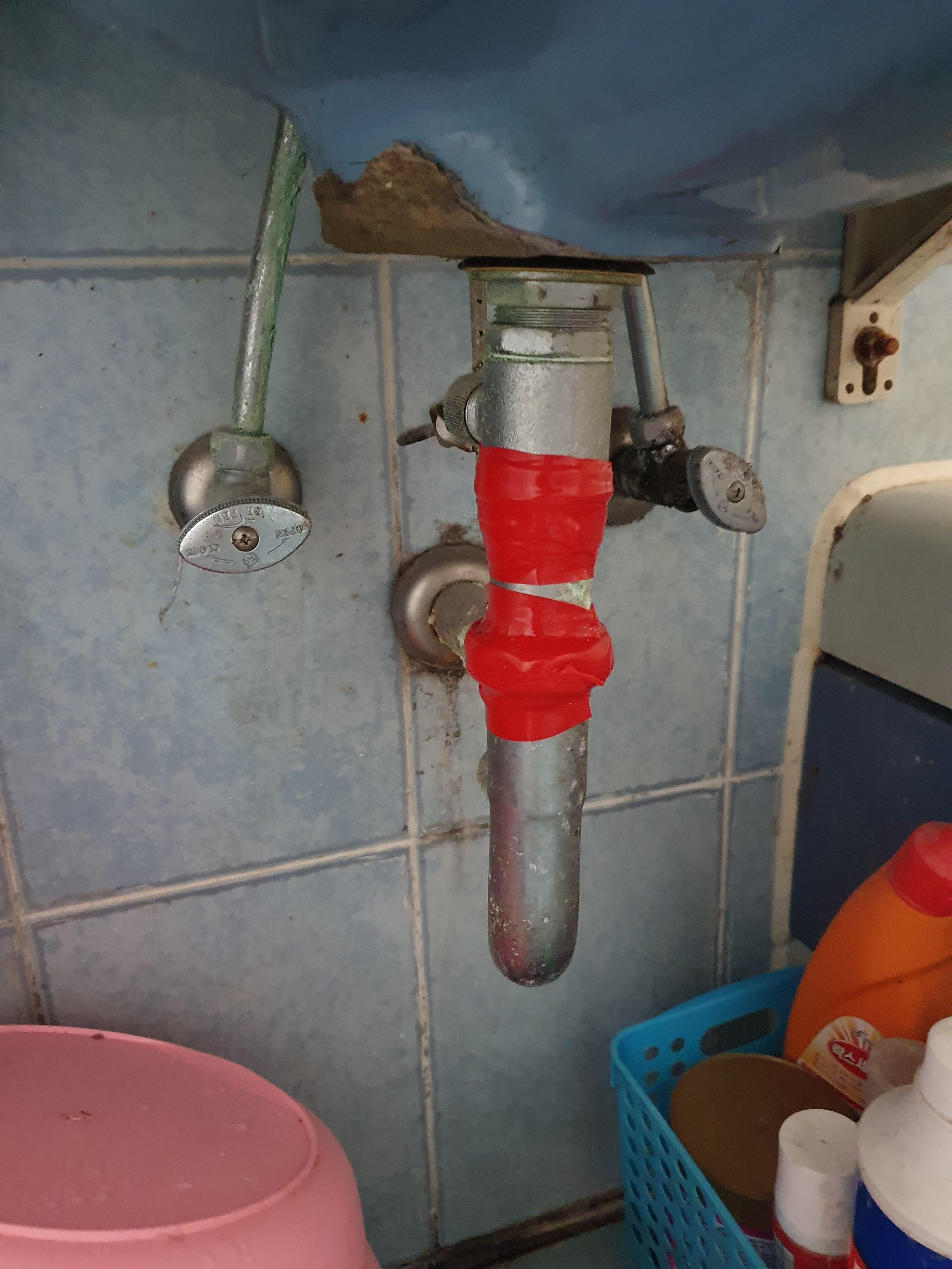화장실 세면대 수도관에서 물이 세다, 방수테이프로 보수 본문