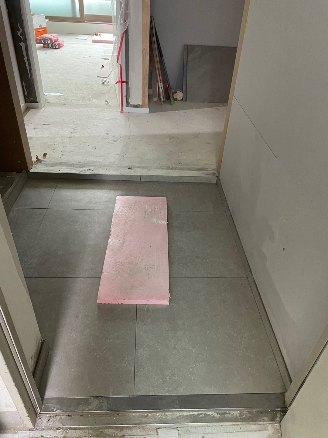 [인테리어공사 중간과정] 7. 타일(2) 요즘은 회색으로 타일을 하는 추세라고 한다. 자잘한거로 하지 않고, 큼지막한 타일로 했다. 많이 진행된 것 같지만 뒤에도 해야할 일들이 꽤 많이 남아있다.