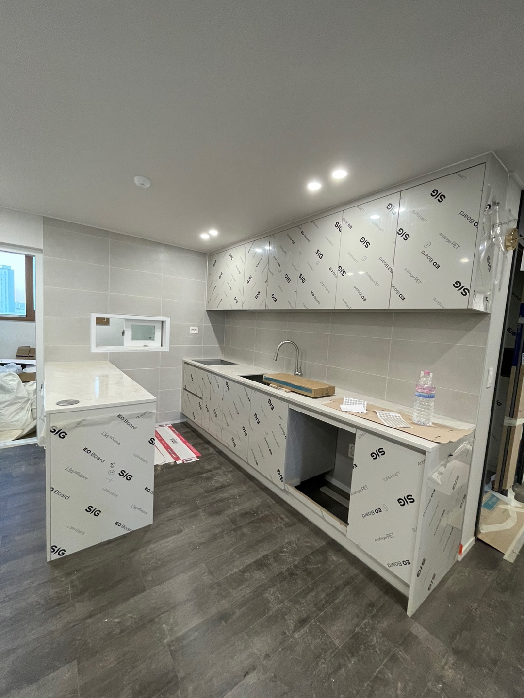 [인테리어공사 중간과정] 7. 타일(2) 요즘은 회색으로 타일을 하는 추세라고 한다. 자잘한거로 하지 않고, 큼지막한 타일로 했다. 많이 진행된 것 같지만 뒤에도 해야할 일들이 꽤 많이 남아있다.