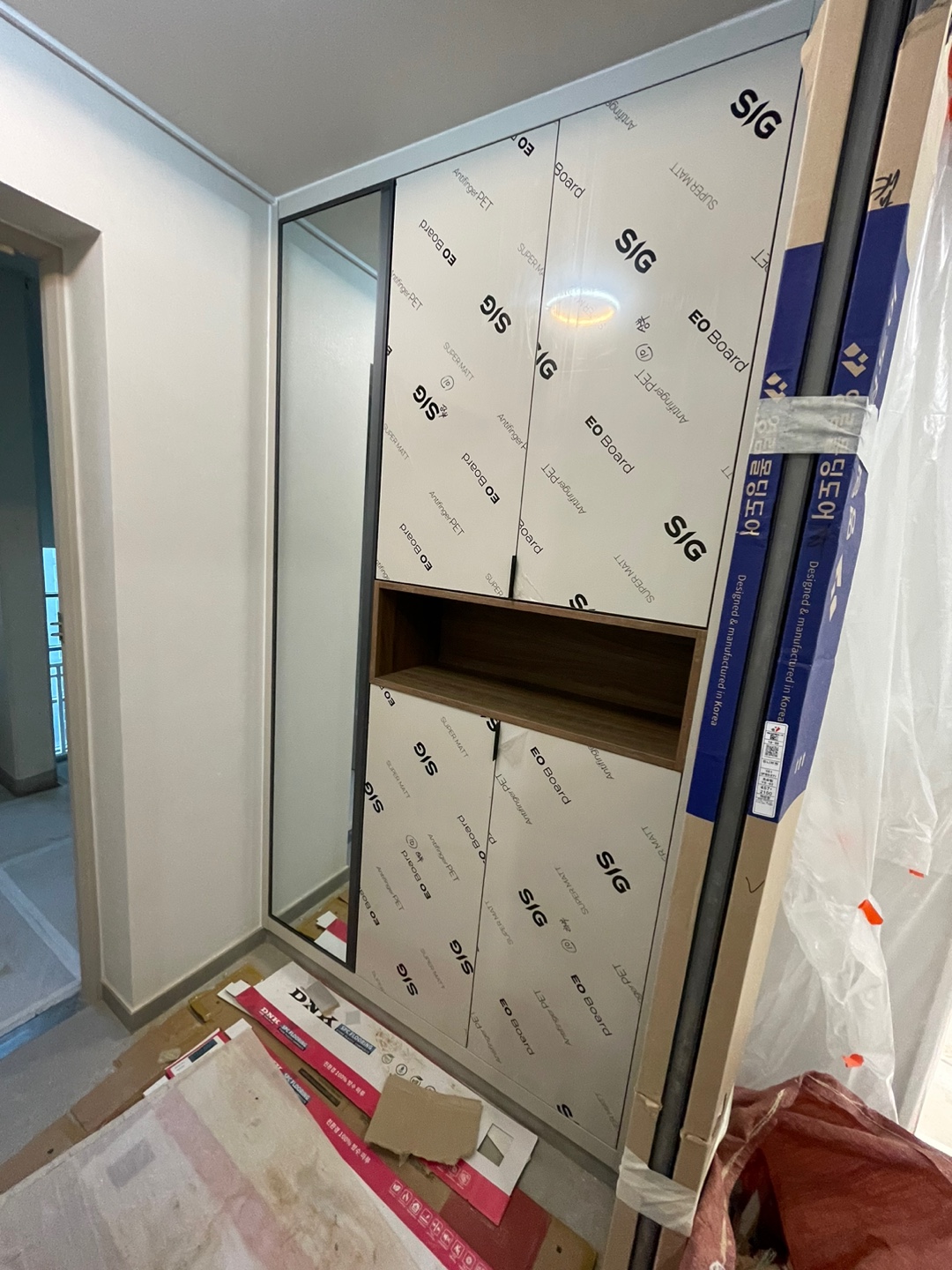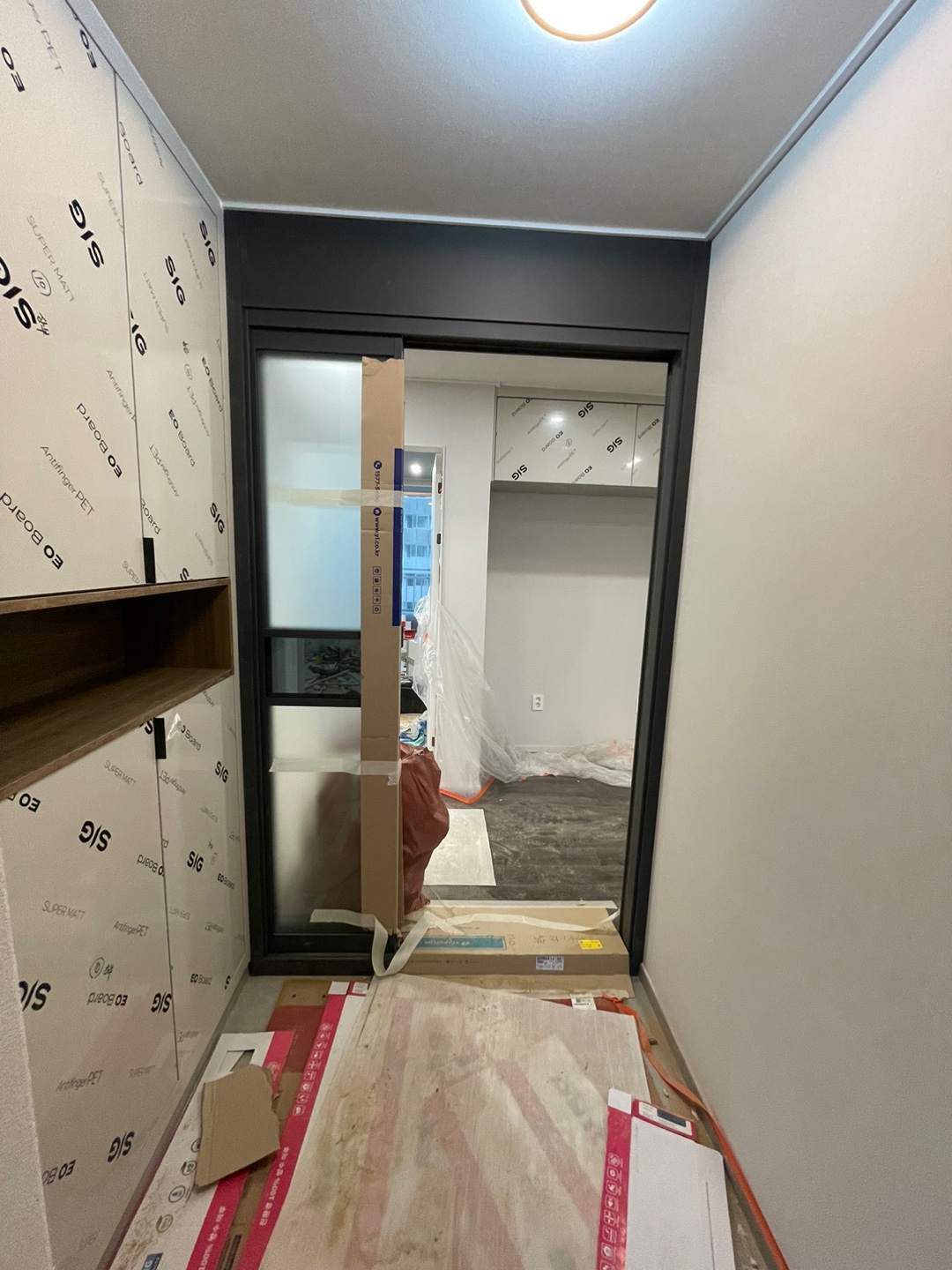 [인테리어공사 중간과정] 5. 목공(2) 공사 당시에는 카톡 보내주셔도 어디가 어딘지 모르겠더니, 이사와서 다시 보니 알거 같다. 이쪽 벽에 곰팡이가 쓸지 않게 작업한 것도 보였다. 관련글 : https:
