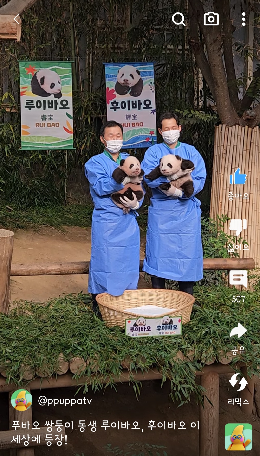 2바오로 불렸던 후이바오한테 조금 더 마음이 가지만 둘다 귀엽다.