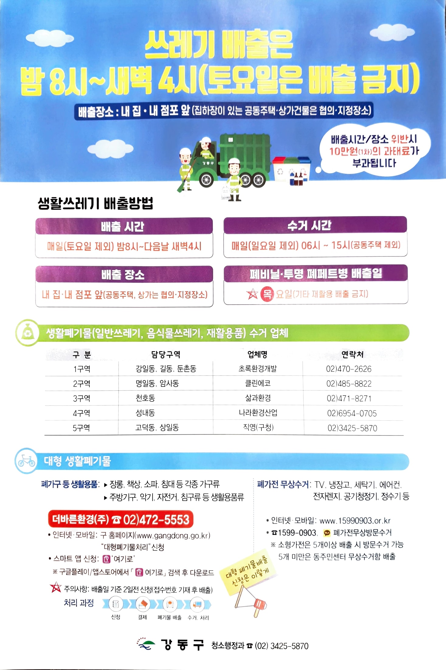 강동구 쓰레기배출 : 주민센터에서 받은 안내문 갈무리 본문