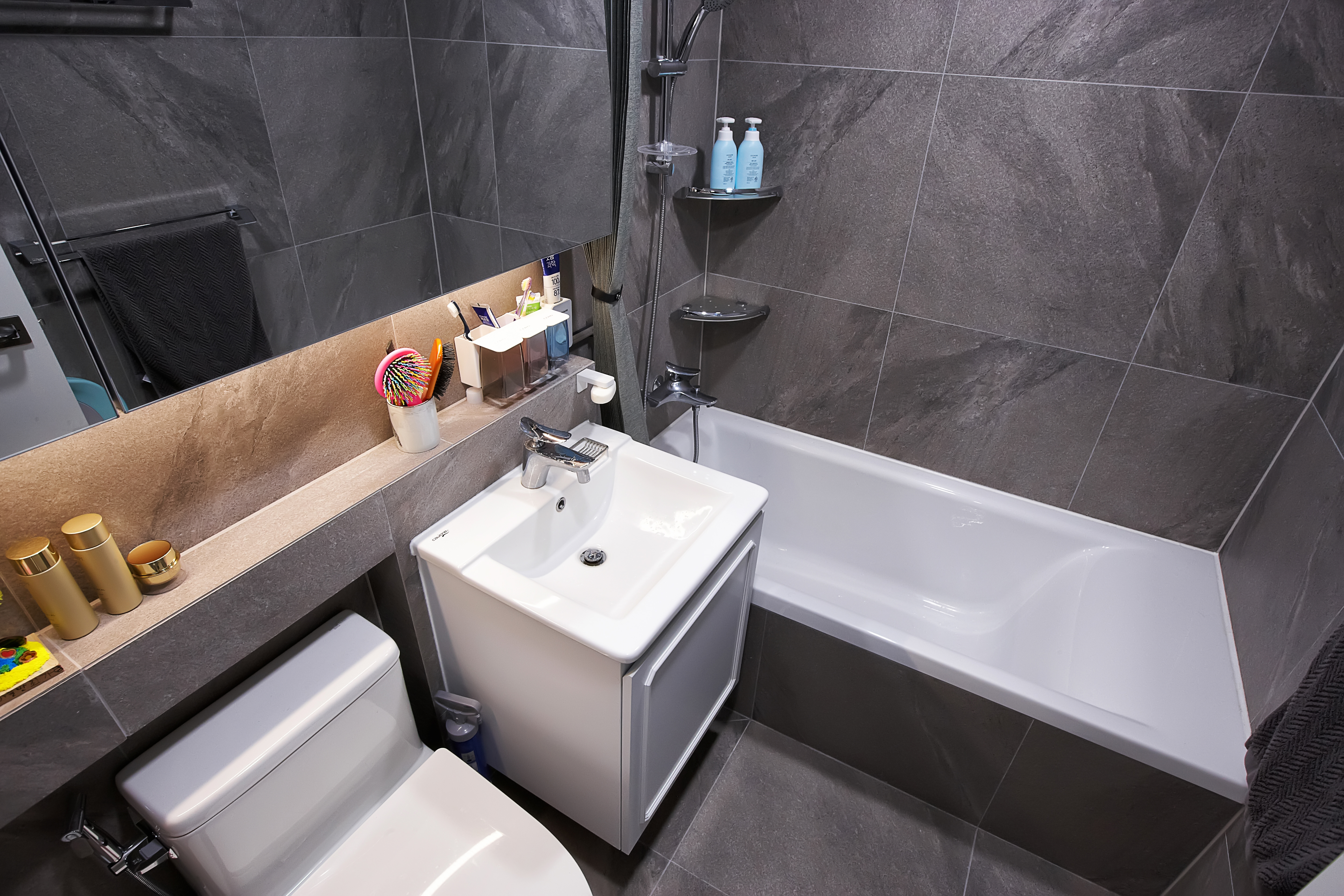 [인테리어공사 중간과정] 9. 탄성코트 및 도기셋팅 이사오고 한 6개월쯤 지나니, 이때처럼 반짝거리고 예뻐보이지는 않는다. 청소를 잘해야 하는데... 위에는 안방 화장실. 110cm 정도 되는 아이의